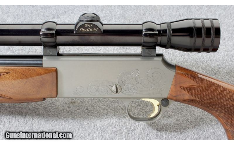 Description: It isn't often that a Browning BAR 22 Grade II comes up for sale. This rifle features a checkered walnut stock, a game scene engraved French gray receiver and polished blue barrel. It would make a great addition to any collection. Manufactured in Japan 1980. .22 Long Rifle SOLD Metal Condition: Excellent Wood Condition: Excellent overall, with scratches on the right side of the butt stock Bore Condition: Excellent Barrels: 20 1/4 inch barrel Triggers: Gold plated trigger Stock Dimensions: 13 3/4 inch LOP Fore End: Checkered walnut fore end Butt Pad: Browning black plate Weight: 6 Lbs. 14 Oz. Sights: Redfield 2.5x scope, folding leaf rear sight with bead front Item Location: Lehi, UT |