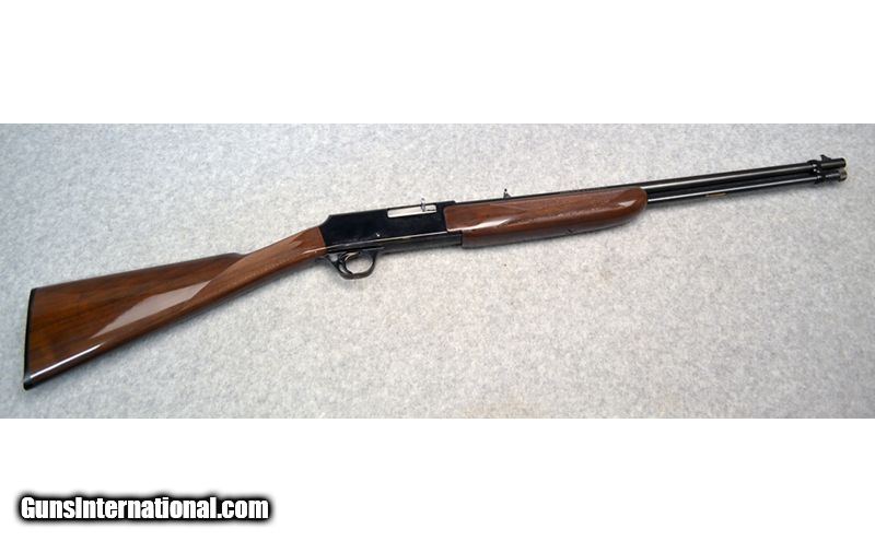 Description: Browning Model BAR-22, semi-auto rifle chambered in .22 Long Rifle. Only manufactured between 1977-1985. High gloss blued finish on all metal parts, checkered high gloss walnut stock, 20 1/4 inch barrel, 15 shot tube fed magazine. The front sight is a beaded blade dovetailed to the front of the barrel. The rear sight is a folding "U"-notch adjustable for elevation and drift-adjustable for windage in its dovetail at the rear of the barrel. The top of the receiver is grooved for a scope mount (none included). This gun is in excellent condition. .22 Long Rifle SOLD Barrels: 19.25 Weight: 6 lbs Sights: Beaded Blade Front and Folding Notch Rear. Item Location: christiana |