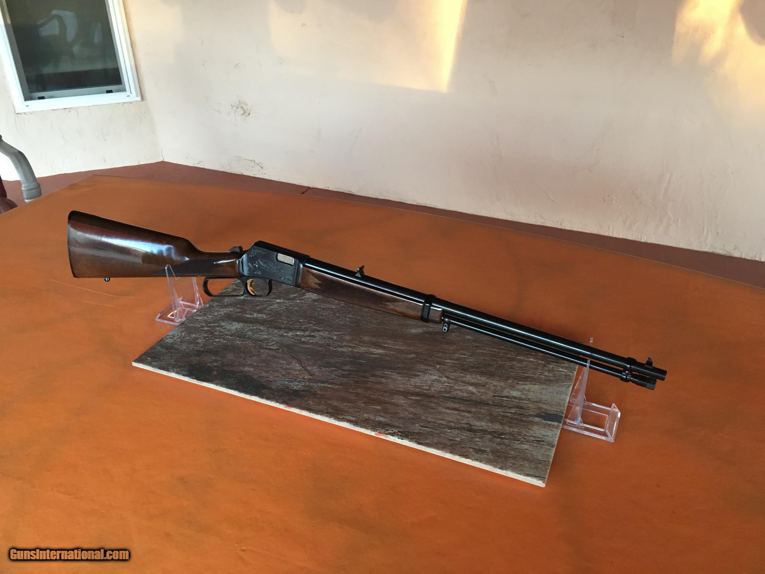 Description: Browning Model BL -22 - Grade 1- Lever Action - .22 LR Repeating Rifle - Walnut straight grip checkered stock and forarm. Short throw lever action. 20 in. long barrel. Bore is clean and bright . Barrel and receiver are retaining approx. 95% plus bluing. Tubular magazine with 15 LR . capacity. Folding rear leaf open sight and front bead sight. Receiver is grooved for scope. Receiver is beautifully scroll engraved. Gold trigger with engraved trigger guard, lever and sling studs . Stock has a few minor handling marks . This rifle is in excellent overall condition and appears to have had very little use. The short throw action makes this beauty really fun to shoot. Manufactured in Japan from 1970 to current production. SALE PENDING All of our rifles have been cleaned and lubricated . We can ship to your FFL dealer at a flat rate of $50.00 S&I to lower 48 states. SOLD Rifle Caliber: .22 Long Rifle Manufacturer: Browning Model: BL -22 Serial Number: 07521RR225 Barrel Length: 20 in. Condition: Excellent Metal Condition: Excellent Wood Condition: Very Good Bore Condition: Clean / Bright Triggers: Gold Butt Pad: Excellent Sights: Open / Bead |