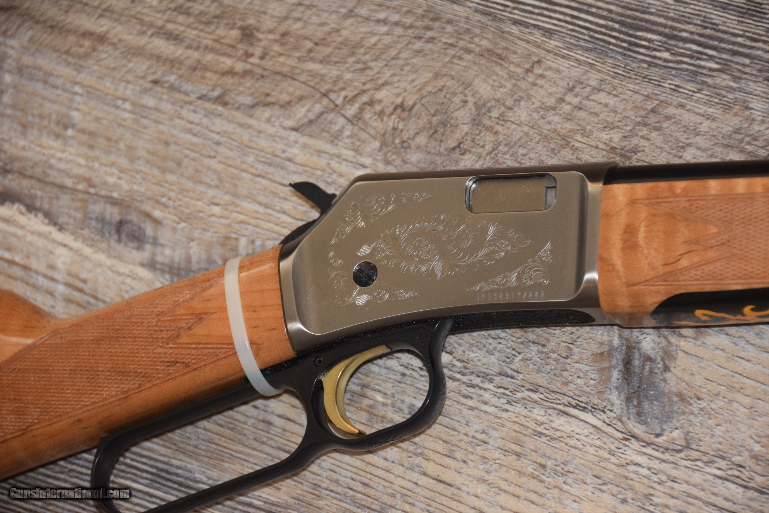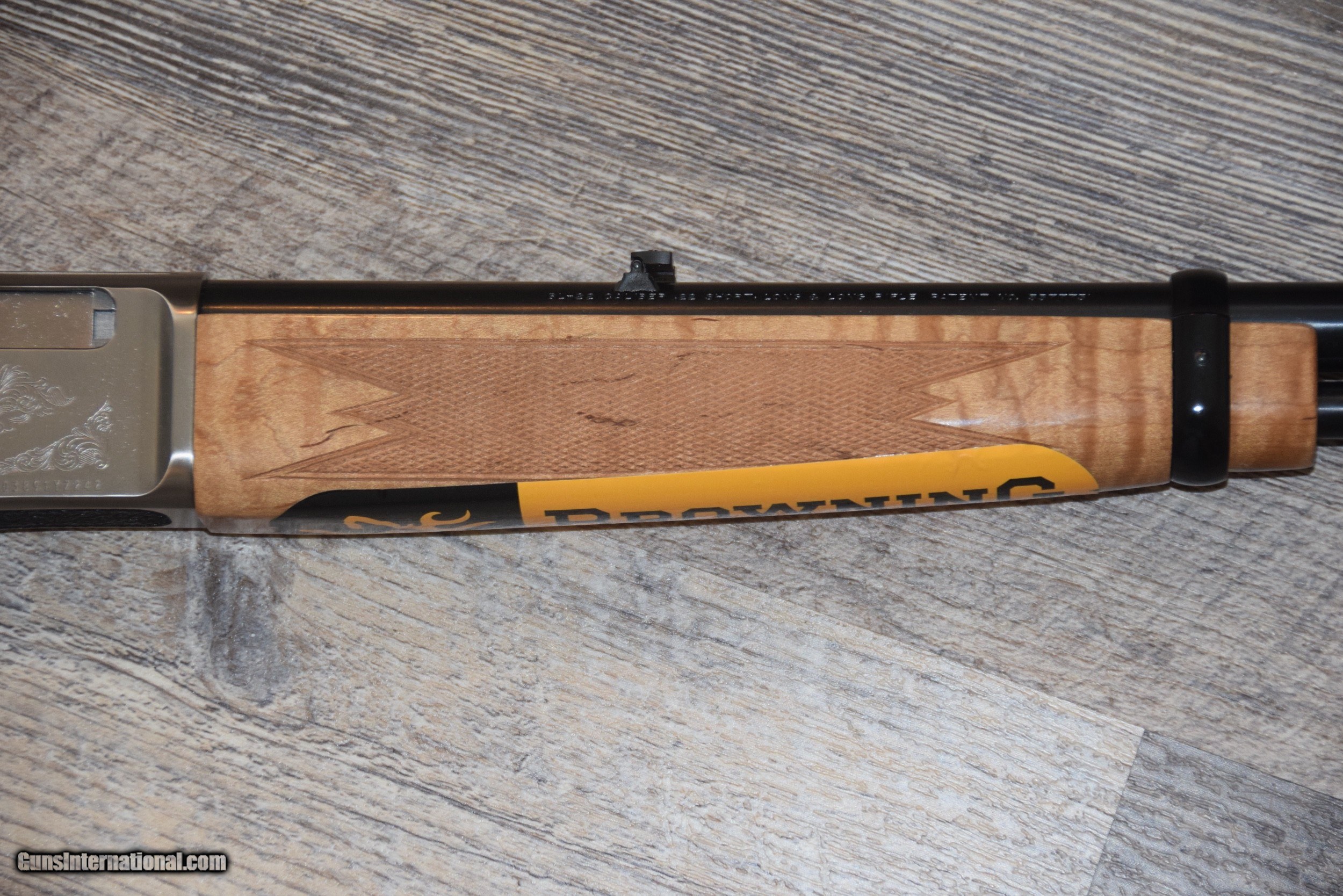Description: Here's a very scarce BROWNING BL-22 GRADE-II ENGRAVED AND AAA-PRESENTATION WOOD LEVER-ACTION .22 LR RIFLE. The outstanding MAPLE STOCK is beautiful, and is the light engraving. This in-the-box, unfired/new gem is being offered for ONLY $1000 SHIPPED, with no fee for credit cards..... SOLD |