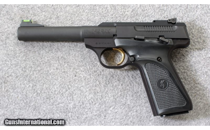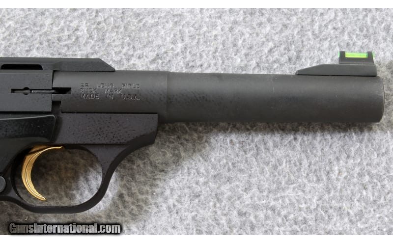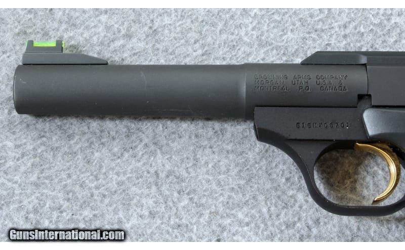 Description: The Browning Buckmark Semi-Auto Rimfire Pistol gives you reliability and accuracy you can count on. The feature packed Buckmark starts with a machined 7075 aluminum alloy semi-automatic pistol frame. The ambidextrous grip panels provide a secure hold in any type of shooting environment. The Bull barrel balances the pistol's weight perfectly. The fiber optic front sight and adjustable rear sight allow for precise shooting at small targets. The light and crisp trigger is gold plated that compliments the overall appearance of the pistol. The Buckmark has a 10-round magazine with a durable heat-treated body and coil springs that ensures consistent pressure on the shell follower at the proper angle. The magazine release is conveniently positioned next to the trigger guard where it is easily reached. Manufactured 2003 .22 Long Rifle SOLD Metal Condition: Excellent Bore Condition: Excellent Barrels: 5 1/2 inch bull barrel Triggers: Single action Weight: 36 oz. Sights: Adjustable rear sight with TruGlo fiber optic front sight Item Location: Lehi, UT |