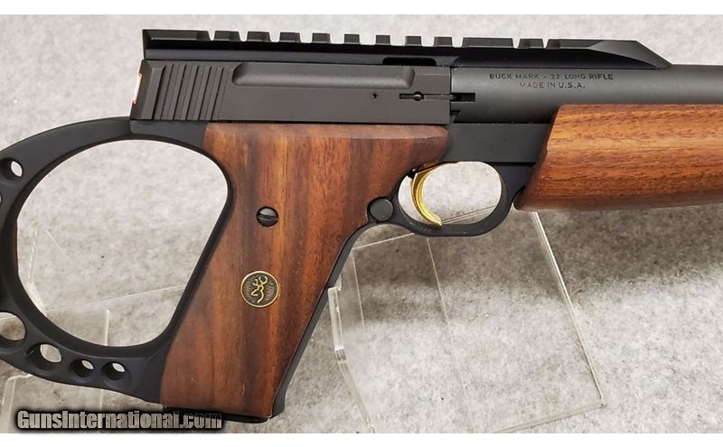 Description: Buck Mark Sporter Rifle Based on the popular and proven Buck Mark pistol, the Browning Buck Mark Rifle is one of the most unique rimfires ever produced. These nifty little rifles offer everything you need: dialed in ergonomics, fast handling and modern styling. Plus, like their namesake, the Buck Mark rifles provide outstanding accuracy, dependable blowback operation, a crisp single action trigger pull and magazines that are interchangeable throughout the Buck Mark line .22 Long Rifle SOLD Chambers: .22 LR Metal Condition: Like New Wood Condition: Like New Bore Condition: Like New Barrels: 18 Fore End: Like New Butt Pad: Like New Weight: 5lbs 15oz Item Location: Berlin |