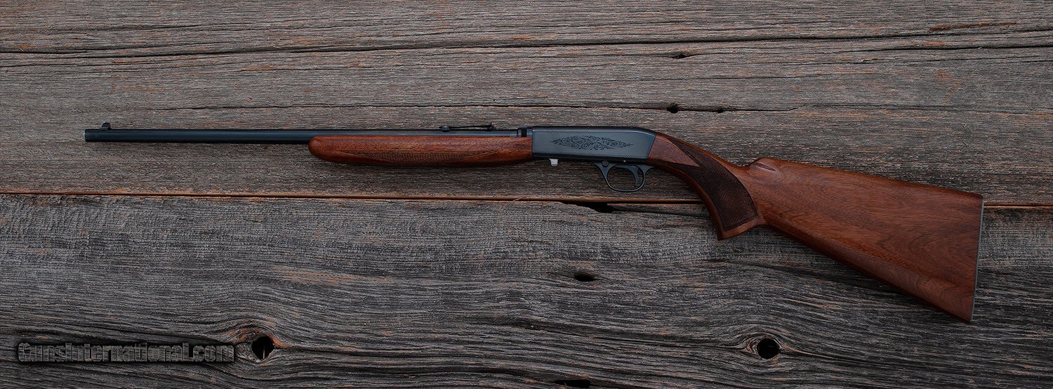 Description: Browning - Grade 1 - .22 Cal caliber - Item Number: BROP87915 Rifle type: Semi Auto Action: Semi-Auto Barrel length: 19 Sights: Factory Sights Weight: 5 lbs, oz Overall condition: Very Good Stock condition: Very Good Metal condition: Very Good Stock: Original finish Metal: Original finish Type of Case: none Finish: Blue Type of Butt: Factory Manufactured in: Belgium Lop: 13 3/4 " Hand: Right Comments : Rifle is in very good condition with some light handling marks. R-93 SOLD |