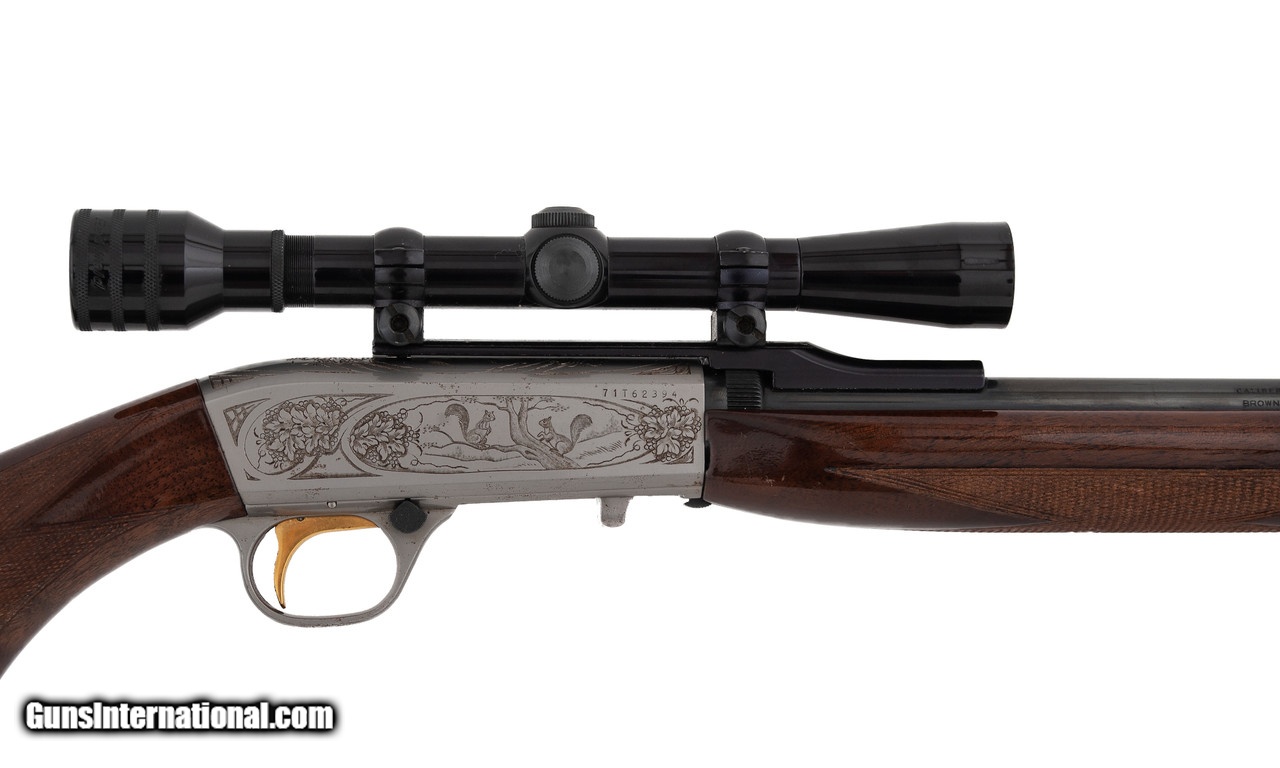 Description: Rifle is in good condition with a few light cabinet marks in the wood. SOLD Manufacturer: Browning Model: Grade 2 Caliber Info: .22 Condition: Preowned Metal Condition: Very Good Barrels: 18 1/2 Action: Semi Automatic Triggers: Single Gauge Info: .22 LOP: 13 3/4 Weight: 5-4 Case: No |