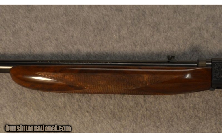 Description: This is a pre-owned Browning Grade VI SA-22 in .22 LR with a 19” barrel. In production for nearly a century, the SA-22 is unlike any other rimfire rifle on the market. Much more than "just a 22," the history of this fine rifle can be traced back to the mind of the gunmaker himself, John M. Browning, and is a lasting tribute to his genius. The SA-22 is sure to become your favorite plinker and varmint rifle. It is lightweight and easy to carry on a squirrel hunt, and easy to load for a day of plinking at the range. Construction quality and materials are top notch to ensure longevity and lasting beauty. The fine Walnut stock is sharply Checkered and polished to a sheen. The Grade VI has a deeply blued finish with an engraved game scenes with gold enhancements. The SA-22 ejects fired brass out the bottom of the receiver to make shooting a pleasure for right- and left-handed operators. Perhaps the most interesting feature is the ability to take the rifle down into two parts — the buttstock and receiver and the forearm and barrel — for storage or to simplify cleaning. This rifle is in excellent condition, it appears to be unfired with just a few spots of flattened checkering. SOLD Manufacturer: 1989 Caliber Info: .22 LR Metal Condition: Excellent. Wood Condition: Excellent with a few small spots of flattened checkering. Bore Condition: Clean with bright lands, appears to be unfired. Barrels: 19” Stock: Checkered gloss finished select American Walnut. Stock Dimensions: 13 ¾” LOP Fore End: Checkered gloss finished select American Walnut. Butt Pad: Blued metal buttplate. Weight: 5 lbs. Sights: Adjustable sights with gold bead front. Extras: Comes with factory box. Item Location: Glendale, AZ |