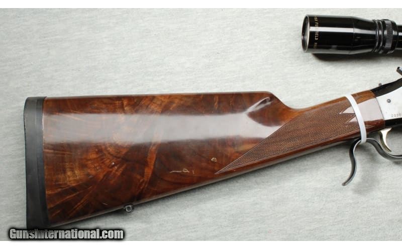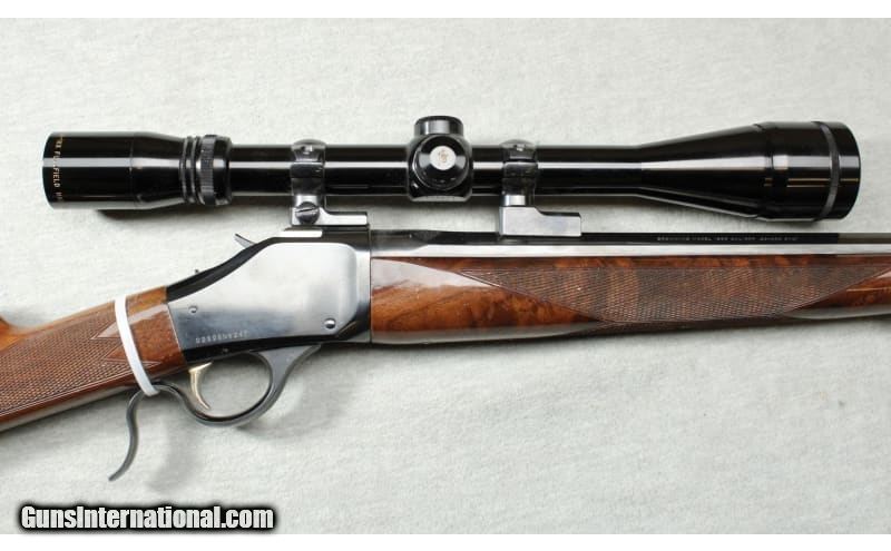 Description: Excellent condition, light finish wear, small nicks and scratches. Single shot hunting rifle with 28" octagon barrel, blued finish metal, smooth action & crisp trigger, and Burris 6-18x scope. High gloss finish checkered forend & stock, Browning recoil pad and sling swivel mounts. .22-250 Remington SOLD Chambers: Single shot Metal Condition: Excellent Wood Condition: Excellent Bore Condition: Bright Barrels: 28 Triggers: Factory Stock Dimensions: 13" LOP Fore End: Checkered Butt Pad: Browning pad Sights: Burris 6-18x scope Item Location: La Vista, NE |