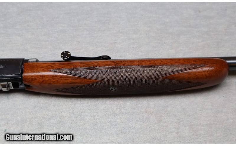 Description: Excellent condition, light wear, few small nicks and scratches. Classic Browning semi auto rimfire rifle, polished blue metal, 19" barrel, lightly engraved receiver and adjustable rear & bead front sights. Gloss finish checkered wood forend & stock with factory metal butt plate. .22 Long Rifle SOLD Chambers: Semi auto Metal Condition: Excellent Wood Condition: Excellent Bore Condition: Bright Barrels: 19 Triggers: Factory Stock Dimensions: 13 3/4" LOP Fore End: Checkered Butt Pad: Metal butt plate Sights: "Adjustable rear, bead front sights Item Location: La Vista, NE |