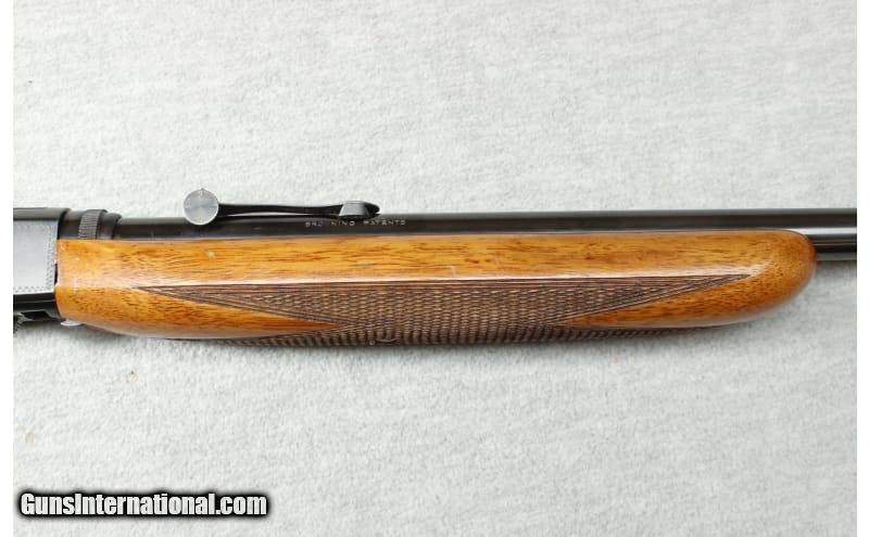 Description: Excellent condition, light finish wear, small nicks and scratches. Teh SA-22 is handy little .22 rifle, known by Browning variously as the SA-22, .22 Semi-Auto or just Auto Rifle, has been in production for more than a century. The John M. Browning design was the first semi-auto rifle made for the .22 rimfire cartridge. It has been called a rifle that was appropriately designed for its cartridge - slim, light and easy handling. It was manufactured by Fabrique Nationale in Belgium beginning from 1914, but it wasn't imported to the United States until 1956. Production continued at FN until 1974, when it was moved to Miroku in Japan. .22 Long Rifle SOLD Chambers: Semi auto Metal Condition: Excellent Wood Condition: Excellent Bore Condition: Bright Barrels: 19 Triggers: Factory Stock Dimensions: 14" LOP Fore End: Checkered Butt Pad: Metal butt plate Sights: Factory "wheel" rear and post front sights Item Location: La Vista, NE |