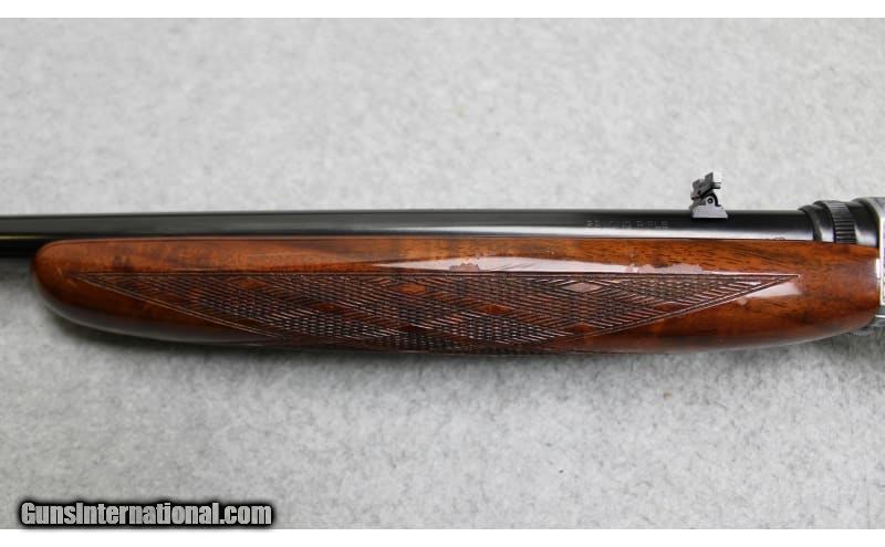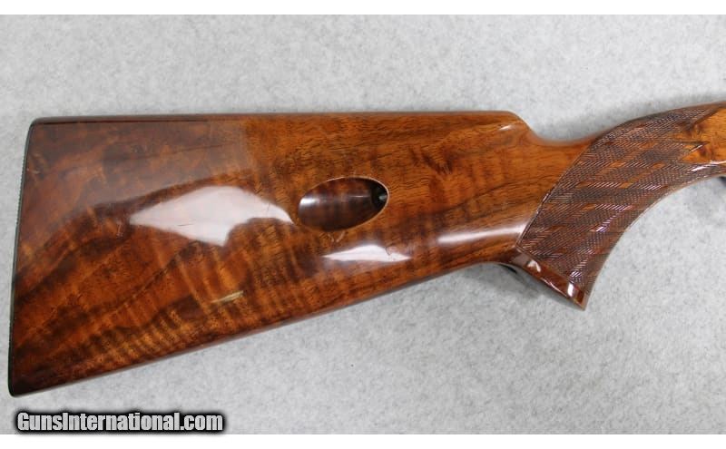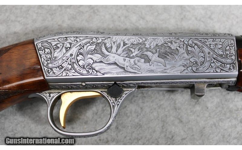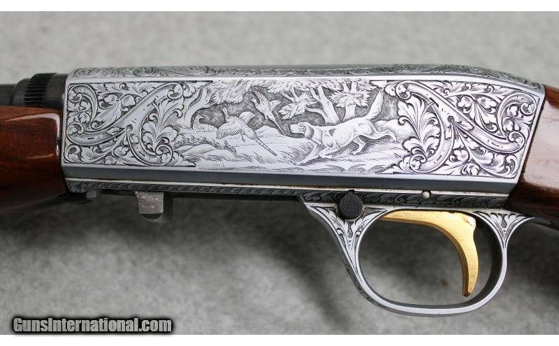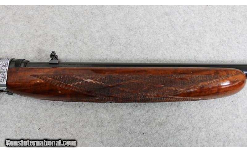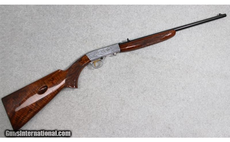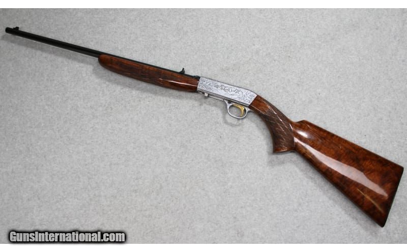 Description: Browning SA-22 Grade III semiautomatic rimfire rifle chambered in .22 Long Rifle. Features include an elaborately engraved receiver and trigger guard with gold-plated trigger. The engravers name (Vandermisseng) is engraved on left and right side of receiver. Has a checkered walnut pistolgrip stock and fore-end. In very good condition with some minor scuffs and dings to the furniture. .22 Long Rifle SOLD Metal Condition: Very Good with Minor Handling Marks Wood Condition: Very Good with Minor Handling Marks Bore Condition: Bright And Clear with No Pitting Barrels: 19 inch Triggers: Gold Stock Dimensions: 14 inch LoP Fore End: Checkered Grade III Walnut Butt Pad: Serrated Steel Weight: 4 lbs 14 oz Sights: Flip-Up adjustable rear with drift-adjustable beaded blade front Item Location: Fort Worth, TX |