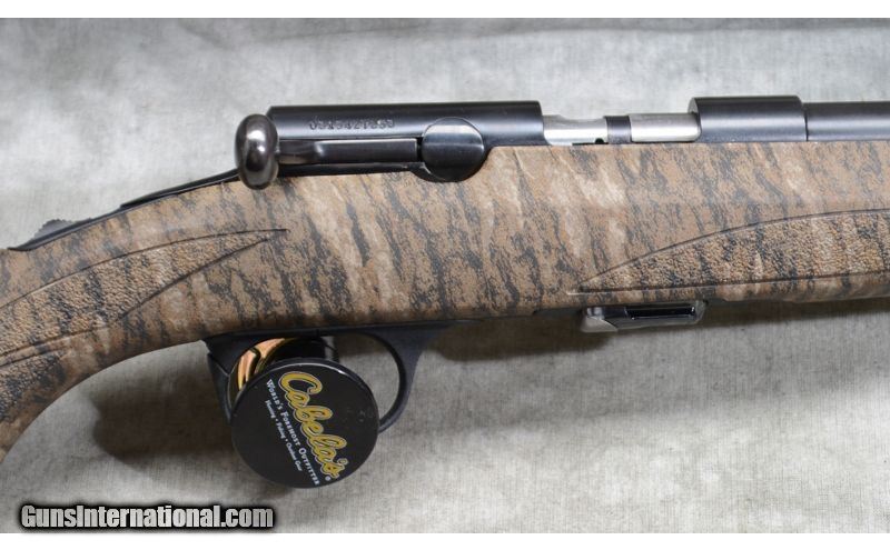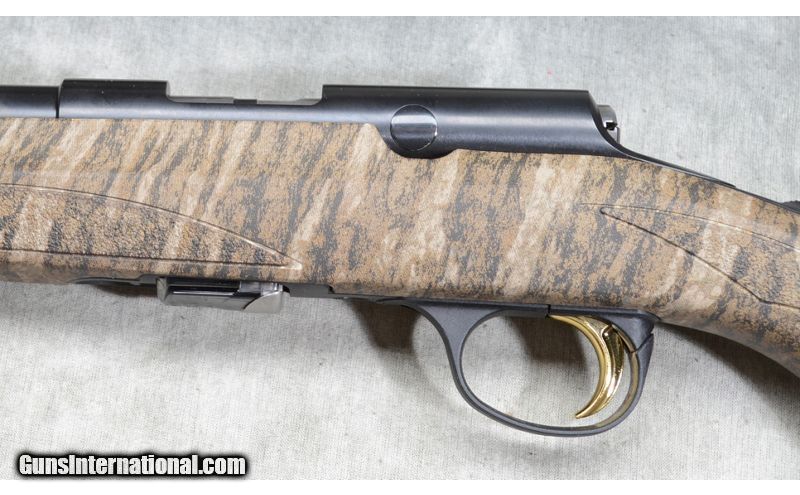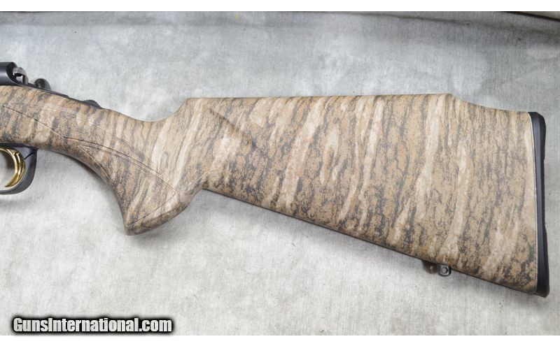 Description: Lightweight camouflage Straight pull T-bolt .22 with two 10-round magazines. .22 Long Rifle SOLD Chambers: 10 round detachable magazine. Metal Condition: LNIB. Wood Condition: LNIB. Bore Condition: LNIB. Barrels: 22 inch. Triggers: Factory gold-plated trigger. Stock Dimensions: 13-3/8 inch. Butt Pad: Plastic plate with storage port for spare mag. Weight: 4 lb. 10 oz. Sights: Drilled and tapped for scope. Item Location: Rogers |