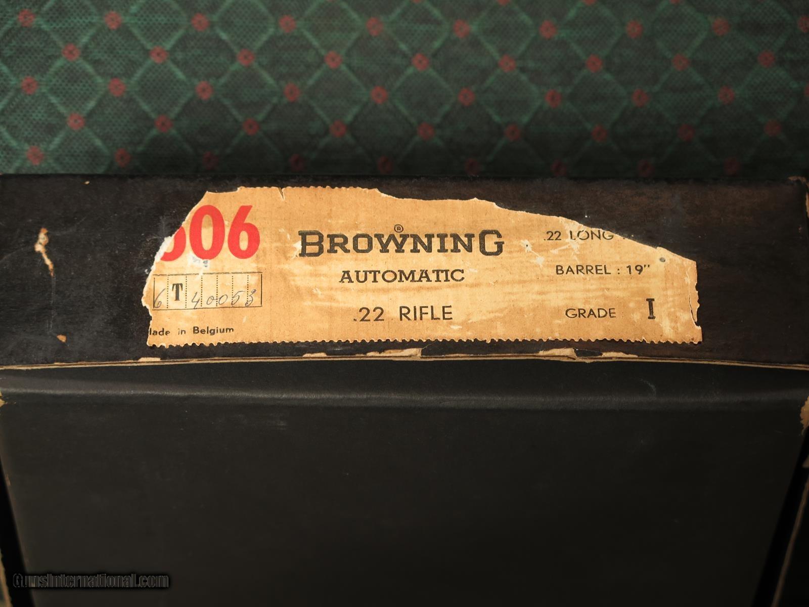 Description: Browning 22 Auto take down 22LR. 1966 Belgium mfg. 19 inch barrel. Excellent condition in original box with manual. SOLD |