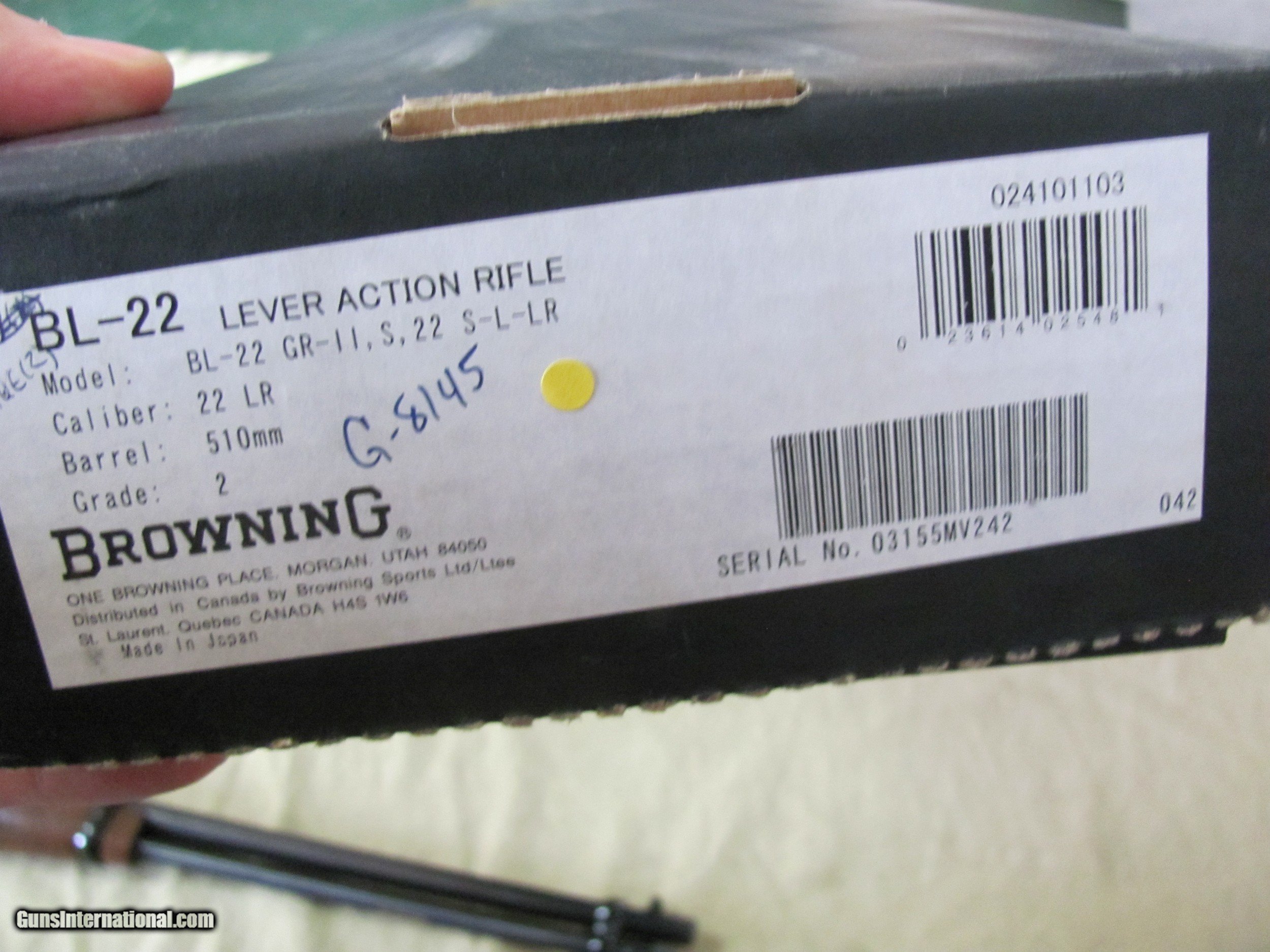 GRADE II BROWNING “SHORT STROKE” LEVER ACTION 22 SHORT, LONG & LR RIFLE