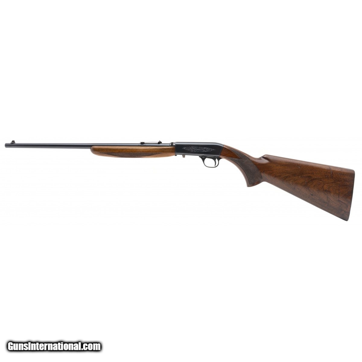 SN: T78376. Early 1960's .22LR with a 19"" barrel. Bore is excellent. Original Belgian made takedown .22 auto with wheel sight. The metal is very good with 95% original blue. The wood shows marks and wear throughout and is in good condition. Overall very good condition, an early Belgian example.