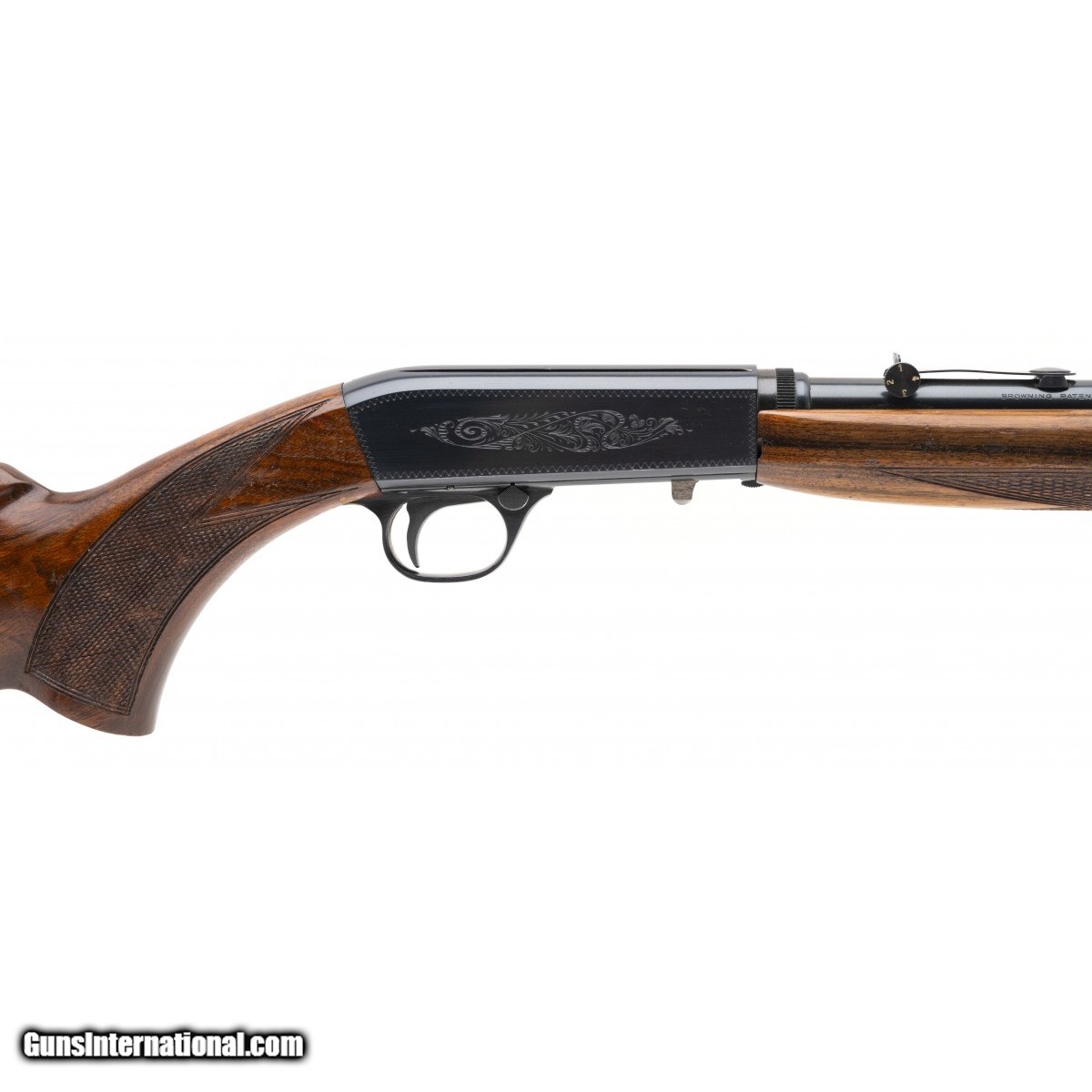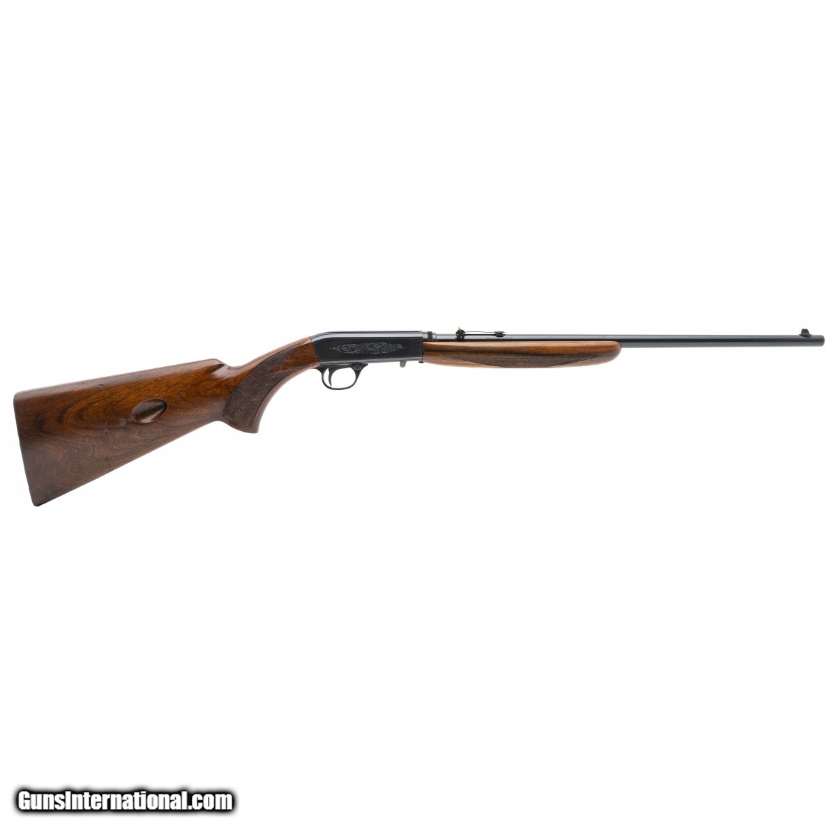 Description: " SN: T78376. Early 1960's .22LR with a 19"" barrel. Bore is excellent. Original Belgian made takedown .22 auto with wheel sight. The metal is very good with 95% original blue. The wood shows marks and wear throughout and is in good condition. Overall very good condition, an early Belgian example. SOLD |
