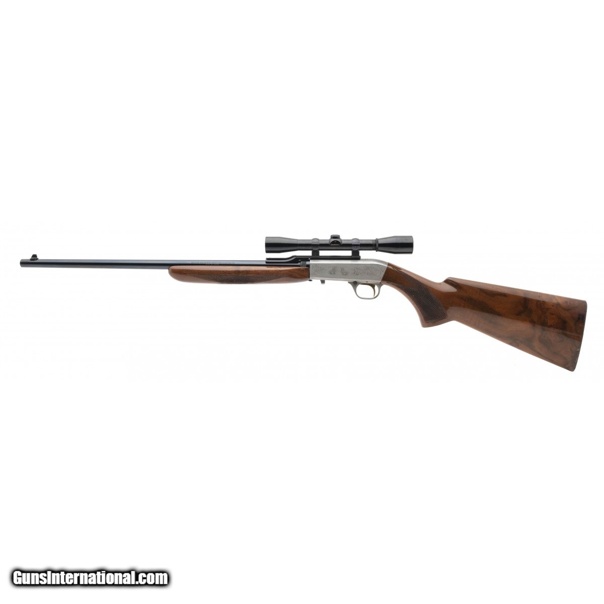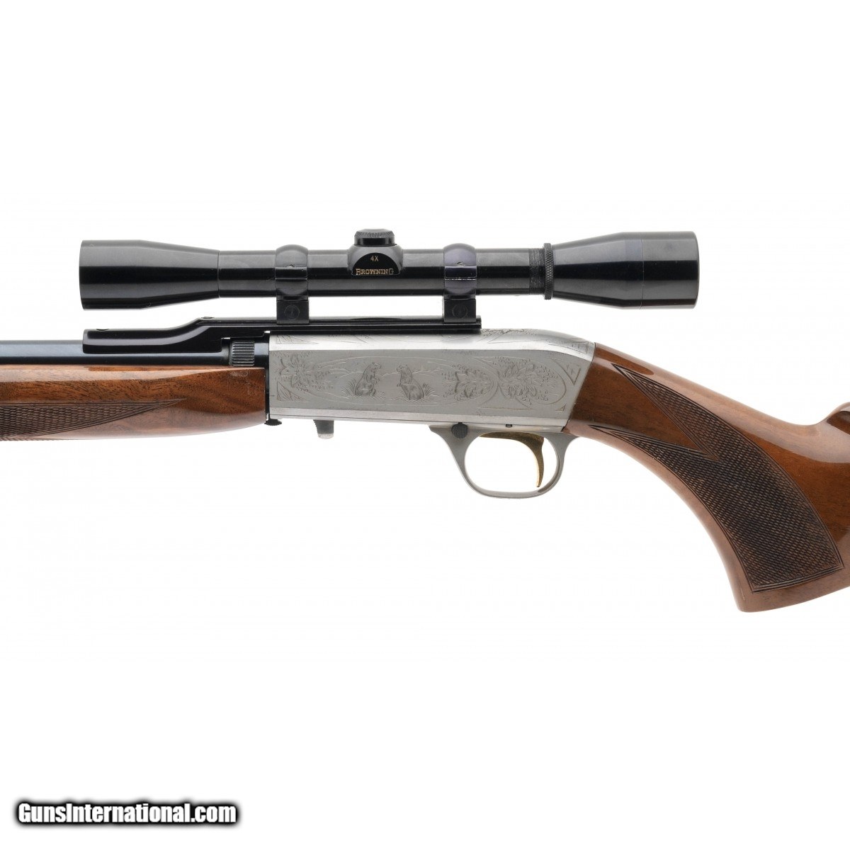 Description: " SN: 39249T57 Manufactured circa 1975, .22LR with a 19"" barrel. Bore is excellent. Japanese semi-auto rimfire takedown rifle with engraved receiver, polished checkered walnut stock. 13.75"" LOP over factory buttplate. Comes with Browning 4x scope. Overall excellent condition. SOLD |