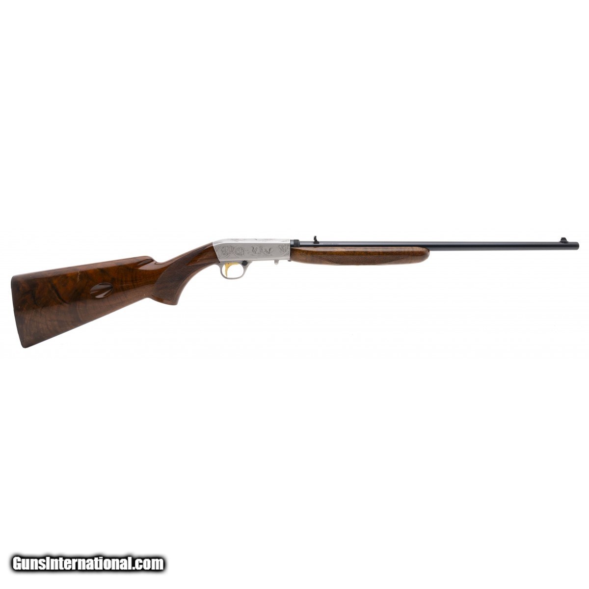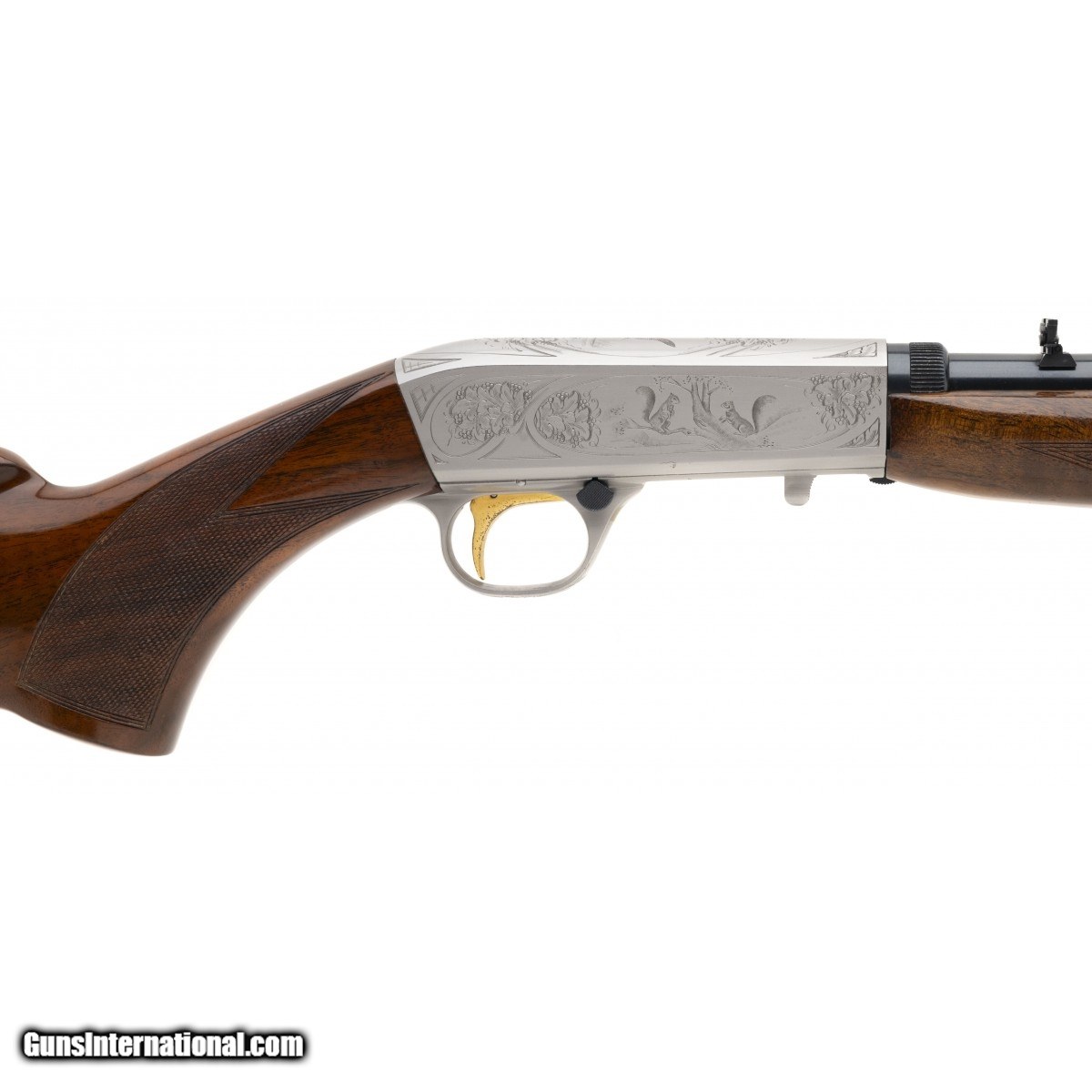 Description: " SN:6T45559. Made in 1966 .22 LR with a 19"" barrel. Bore is excellent. Belgium made Grade II take down rifle. The metal has excellent finish with some nicks and marks on buttstock. Overall condition is very good. SOLD |