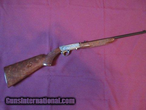 Description: This 1968 Belgium Browning 22 Auto Grade 3 started out as a grade 1 and was upgraded by former Browning Master Engraver Ron Reimer . Beautiful original grade 3 wood with skip line checkering . Like new condition . Free shipping to lower 48 ! SOLD |