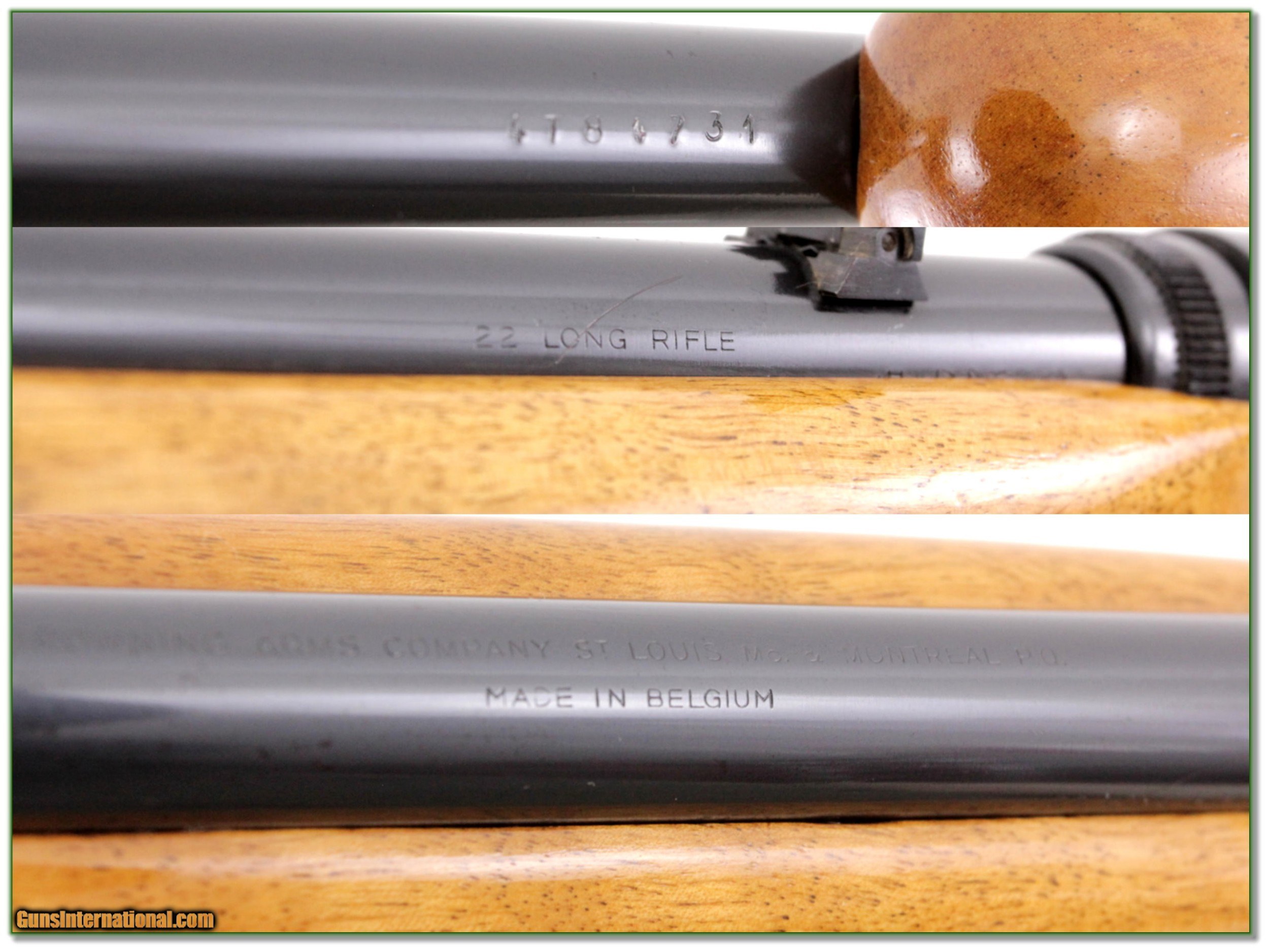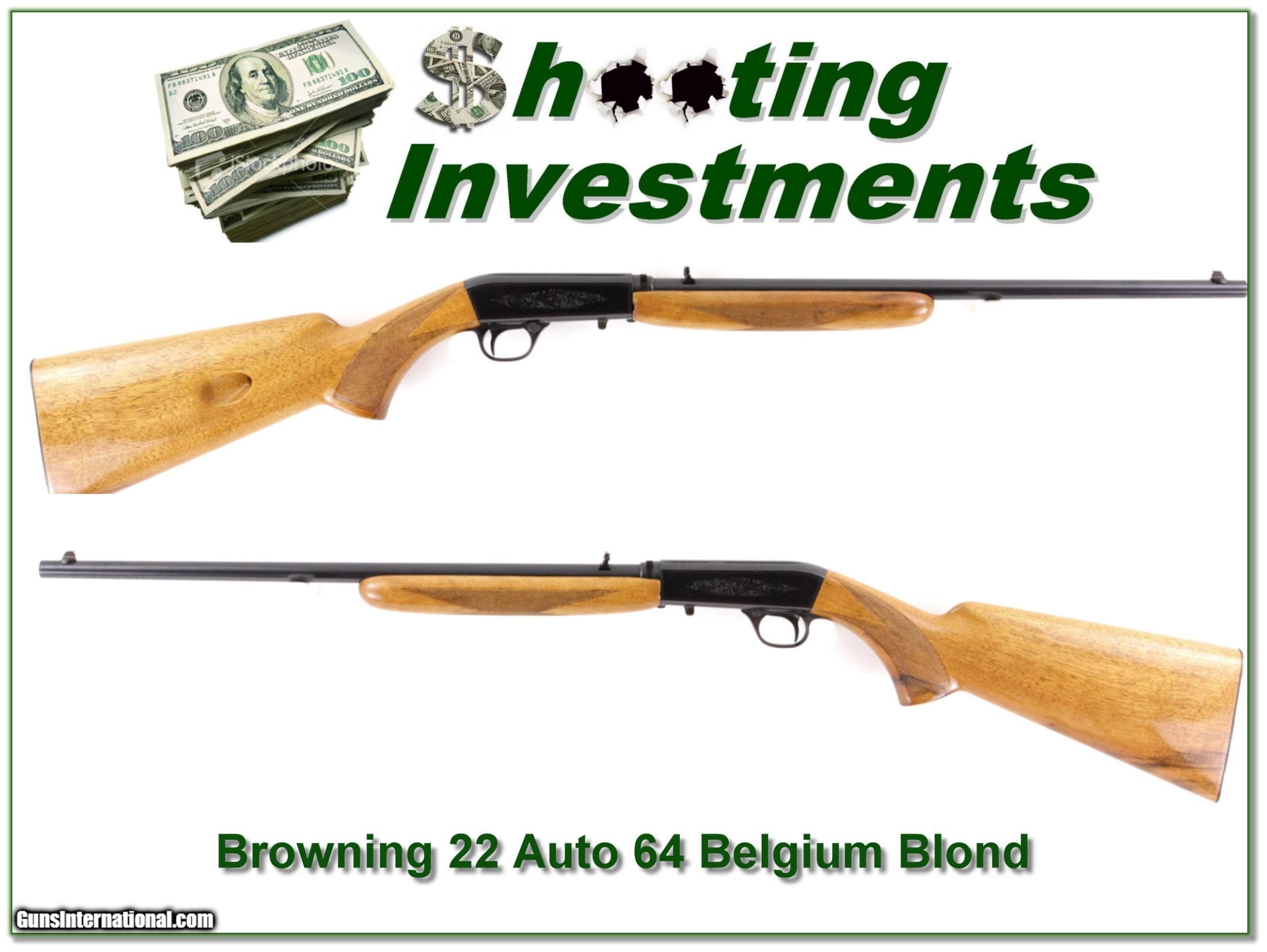 Description: This is a 1964 Belgium made Browning 22 Auto. It has very blond wood. The blue is excellent and wood has only a few minor marks. It will make a classic 22 semi-auto or be a fine addition to your collection. Shipping with insurance is $39. Please email me with any questions or larger pictures. (Consign your quality firearms with Shooting Investments for only 12%! Let me know if you have any you would like to sell!) 19-0274 Payment: Payment is by Money Order, Cashiers Check or Personal Check. I can now also accept Credit Cards (MasterCard, Visa, Discover & American Express) with a 3% convenience fee. PayPal can be used for some items but never for firearms. Shipping: The shipping charge will be listed in each description. It is $39 for most firearms. Some heavy guns or those insured for over $2000 will be higher. Shipments to Alaska and Hawaii are higher because air shipment is required. Most firearms are shipped on Tuesday and Thursday and usually in 5 days of receipt of payment. We package all shipments carefully and insure them. Optics are shipped Priority Mail and most other non-firearm shipments are shipped First Class. Returns: Our return policy is simple. If for any reason you are not pleased with your purchase, you may return your item for a full refund of purchase price. Ammunition cannot be returned. It is important to us that you are happy. Guns cannot be fired or dissembled before returning them and they must be returned in the same condition as received. Notification of a return must occur with-in 3 days of receipt at your dealer. Shipping, convenience and dealer fees are not refundable and are the responsibility of the buyer. Lay-a-way: If needed, we offer a 60 day lay-a-way option on most firearms. It is 1/3 now, 1/3 in 30 days and 1/3 in 60 days. Lay-a-way firearm sales are final and if not completed the first payment cannot be returned. Consigning your firearms with Shooting Investments: We will help you get top dollar for your firearms. While most local guns shops charge 20% or more, our fee is only 12% with a minimum of $75. At your local gun shop it might take months to sell. Selling on-line provides instant access to thousands of interested buyers. You won’t find any other on-line dealer willing to sell your firearms for only 12% or listing every gun on 3 separate s. Selling through an House typically costs the seller 15% and the buyer an addition 15% (so 30%) and you have to wait several months to sell and longer to receive funds. If properly priced, we will sell your firearms in a few weeks. Send us an email or give us a call and we’ll explain how easy it is for you to get top dollar. Trading: Trading for use is really just buying your gun to re-sell. If you have a gun you want to trade, please email a picture and we will let you know what we can give or it. You will always get more if we sell it for you on consignment. Help for California Buyers: We are happy to ship to California. It is the buyer’s responsibility to make sure any item you buy is legal in your state. We are also happy to help with your purchase of a firearm from someone other than us. If you see a gun you would like to buy but the seller can’t or won’t ship to California they can ship to use and we’ll then ship it to your California dealer. The cost for this service is only $30 + shipping. Let us know if we can help! SOLD |