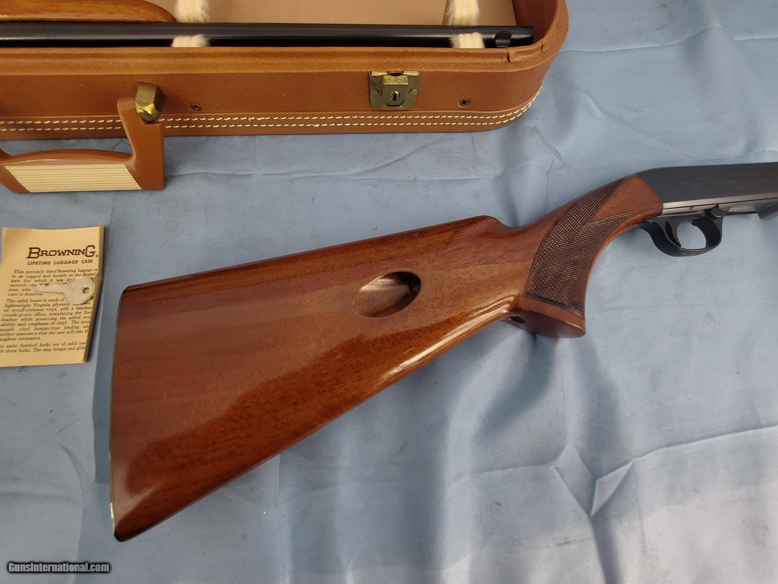 Description: MADE IN BELGIUM IN 1965. BARREL IS 19'' WITH FLIP UP SIGHT. INCLUDES VERY CLEAN HARTMAN CASE. ALL FACTORY AND MINT. PLEASE ADD $75 FOR SHIPPING. SOLD Curio/Relic: Yes Rifle Caliber: .22 Long Rifle Manufacturer: BROWNING Model: ATD Condition: EXCELLENT Metal Condition: EXCELLENT Wood Condition: EXCELLENT Bore Condition: EXCELLENT LOP: 13 3/4'' Weight: 5 LB Extras: NONE |