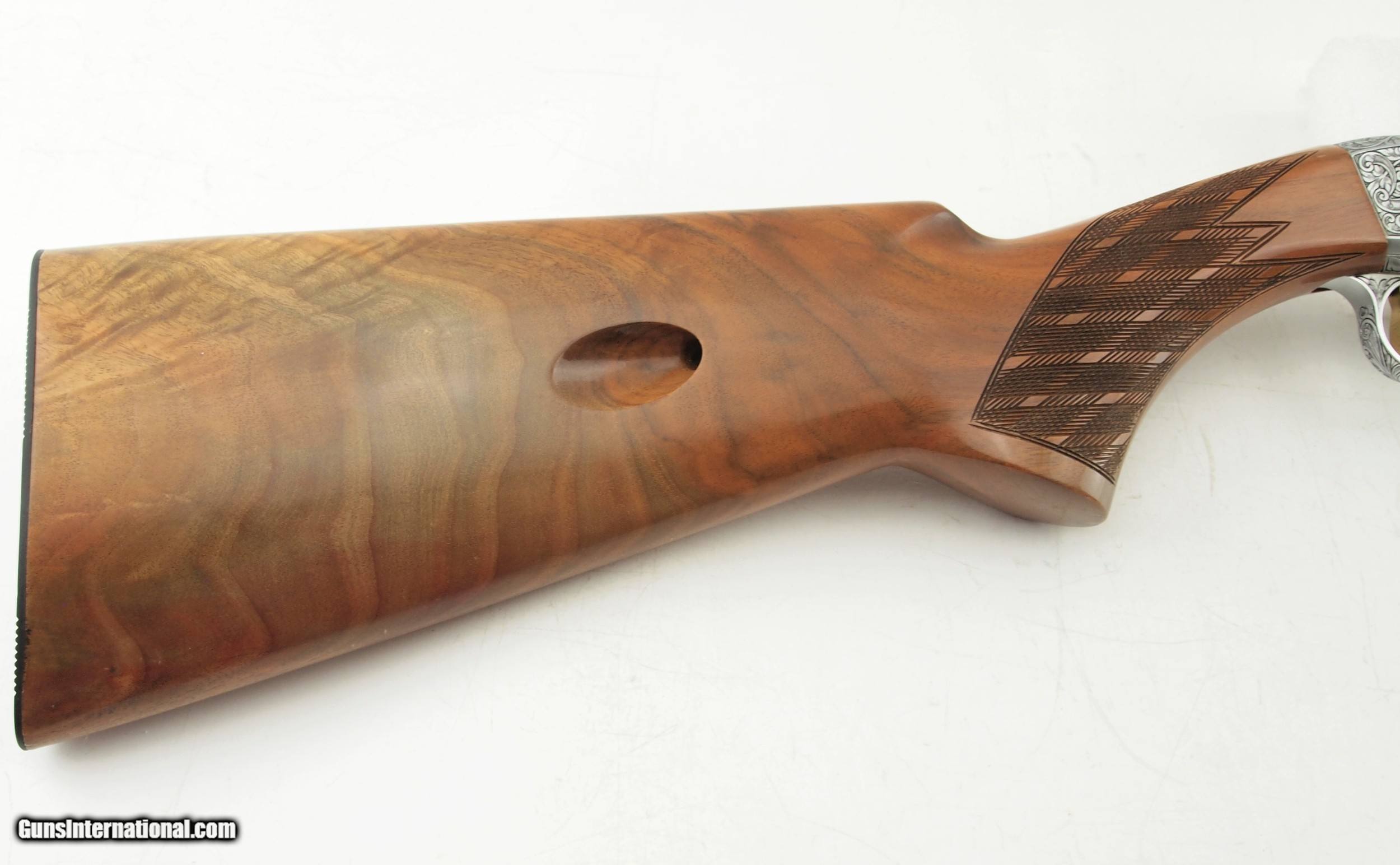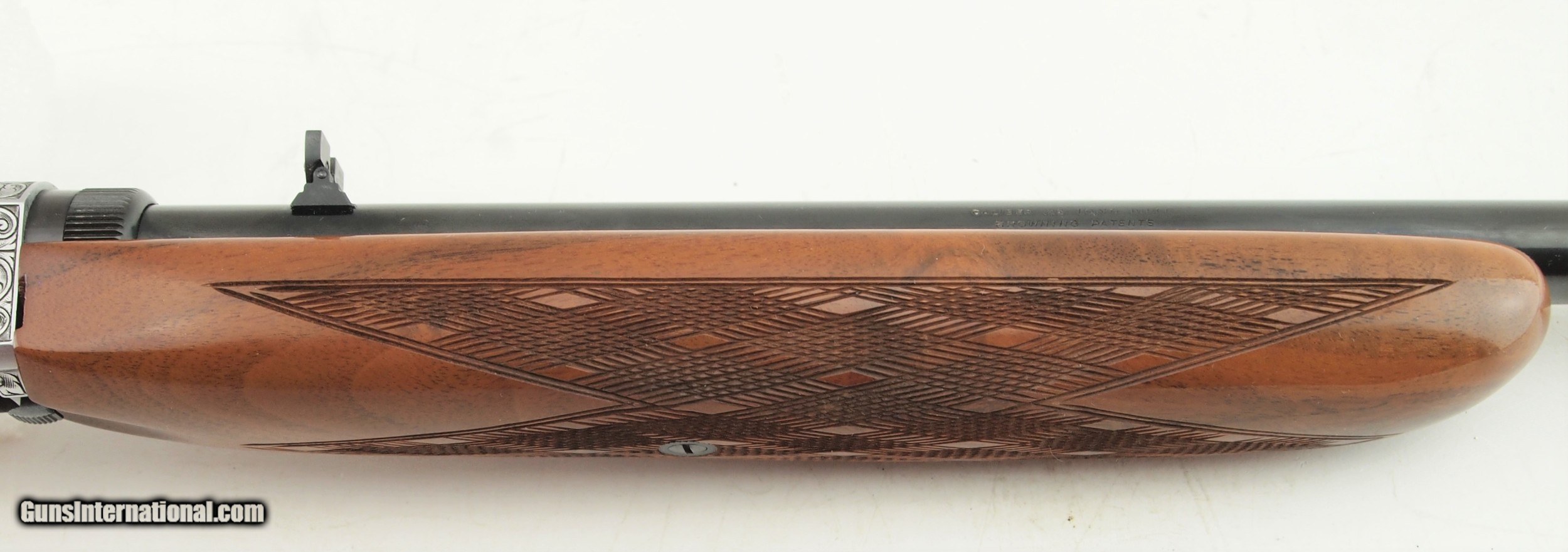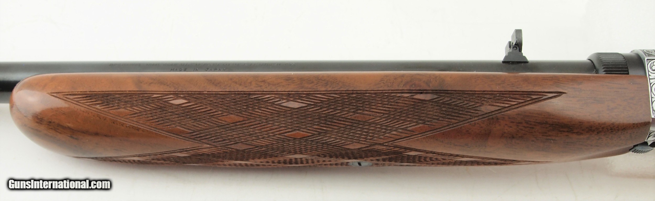 Description: Beautiful Browning Auto 22 Grade III Transition MFG 1978 .22 LR Wbox, 19.25" bbl, bright shiny bore, good rifling, blued finish, adjustable notch rear sight, brass bead front sight, exceptionally beautiful etched receiver and checkered hardwood grip stock - forearm, light handling marks, and metal butt plate. Beginning 1974 Browning shifted it's manufacturingfrom Belgium to Japan which took several years. During this time some Grade III guns stamped "Made In Japan" on the barrel had Belgium engraved receivers signed by M Magis with serial numbers for 1975, 1976, 1977, and 1978. This is one of the transition guns signed by M Magis with the original box and manual. GREAT rifle for your collection! Add 3% for Credit Card Shipping $45.00 SOLD |