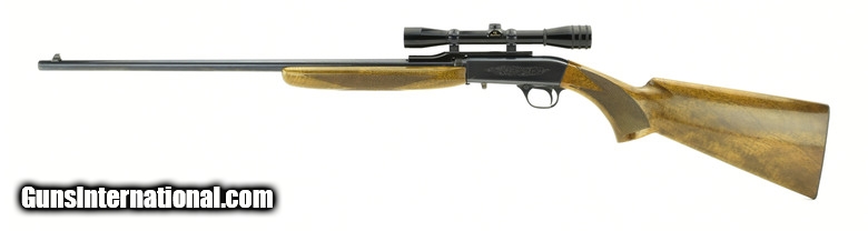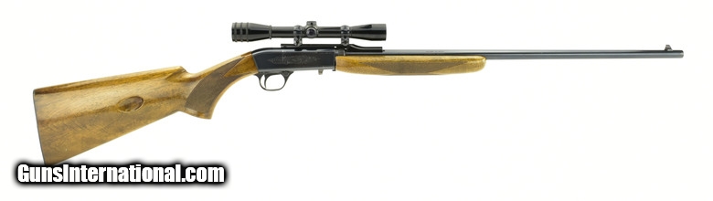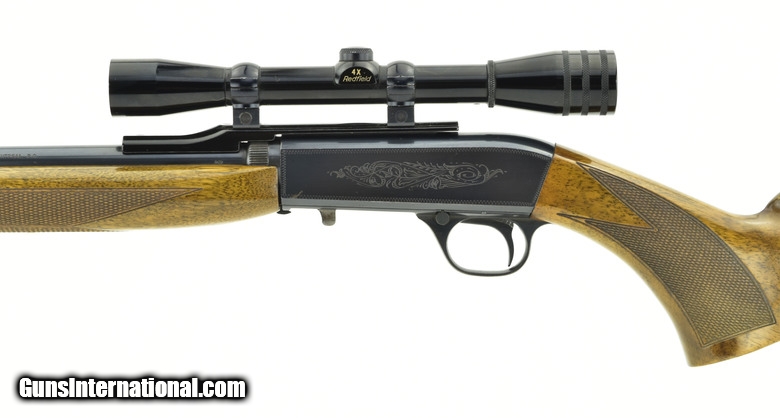 Browning Auto .22 LR caliber rifle. Belgian made Auto .22. Has a Redfield 4X scope. The metal has light wear. The stock has some marks.