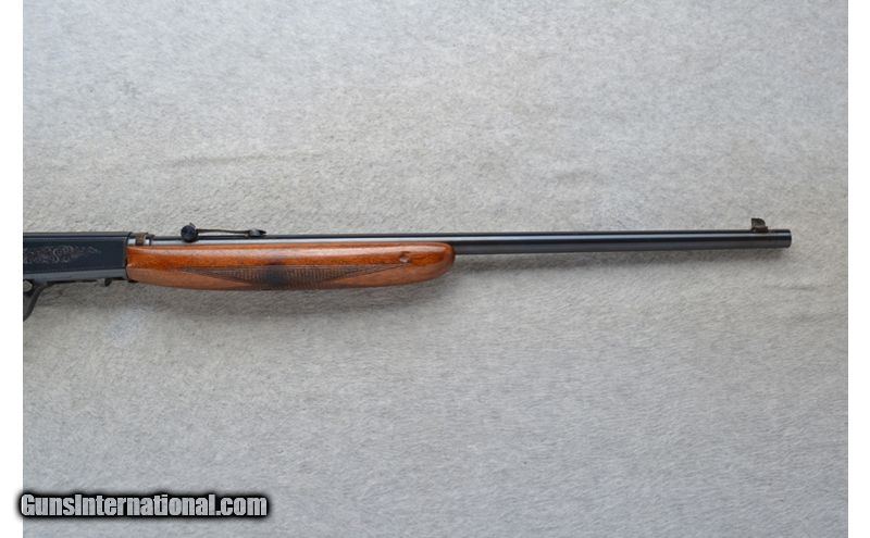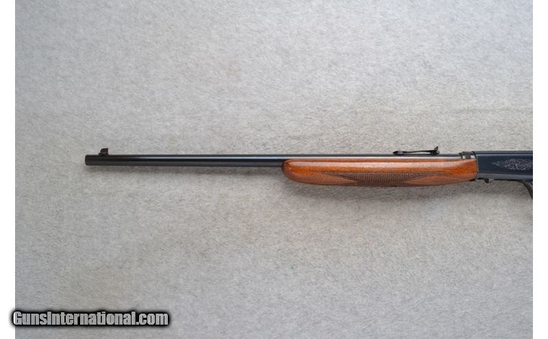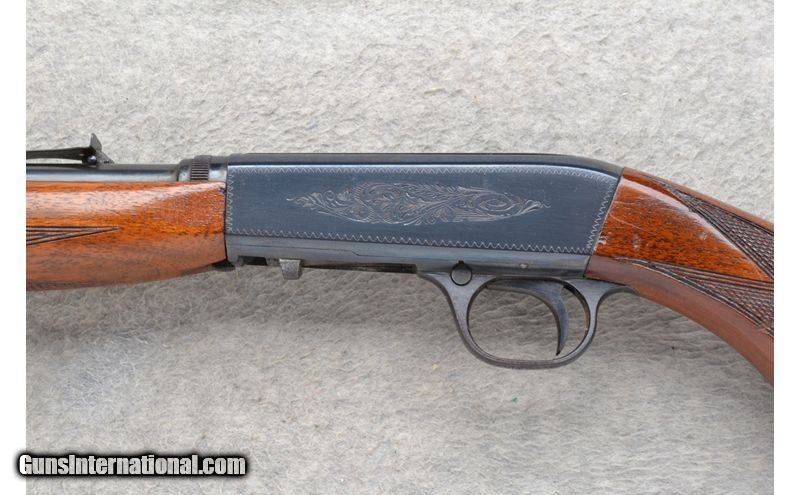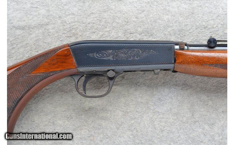 Description: This Browning Semi-Automatic Model takedown design rifle comes in .22 Long Rifle Cal. It has a 19.5 inch barrel. A blade front and adjustable notch middle sight. The butt stock is a checkered walnut pistol grip with a right side quick loading port. The forearm is a checkered grip walnut beavertail style. It has a lightly engraved receiver. Made in Belgium. .22 Long Rifle SOLD Chambers: Semi-Auto 10 round. Metal Condition: Good. Some minor freckling. Wood Condition: Good. Has handling marks. Bore Condition: Very good. Barrels: 19.5 inch barrel. Stock Dimensions: LOP 13 3/4 inch. Fore End: Checkered grip beavertail style. Butt Pad: Grooved steel plate with a tube magazine loading port. Weight: 4 lb. 10 oz. Sights: Blade front. Adjustable notch middle. Dove tailed for a scope mount. Item Location: Richfield, WI |
