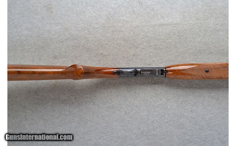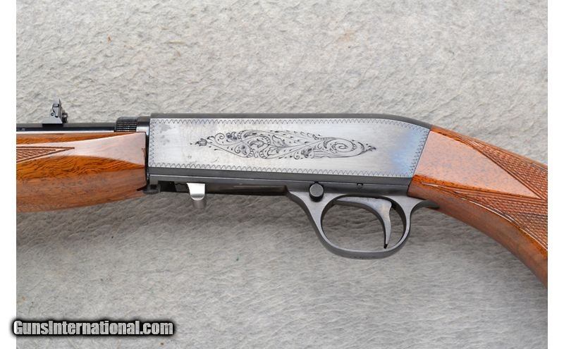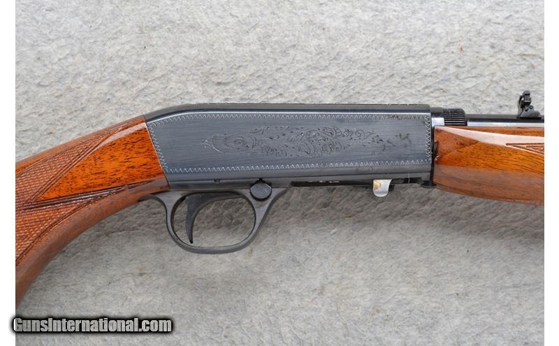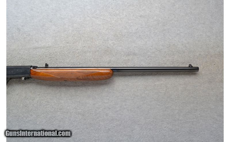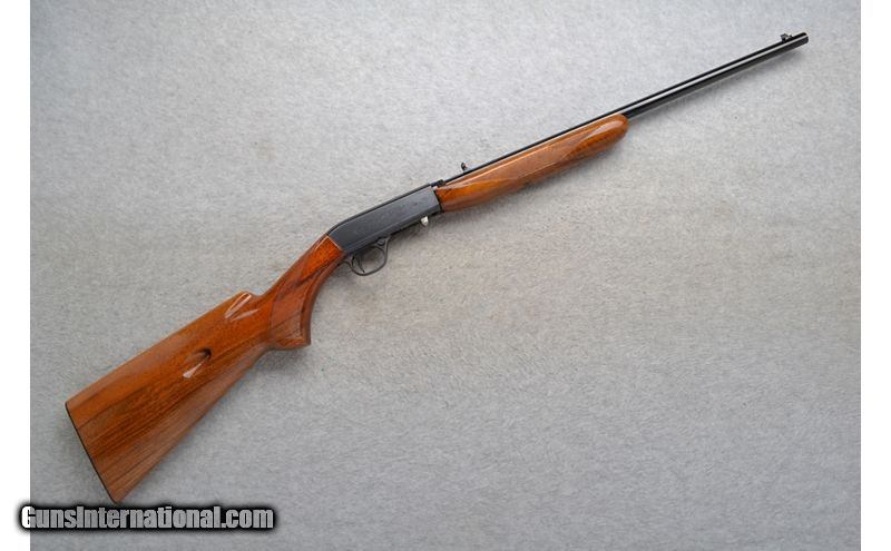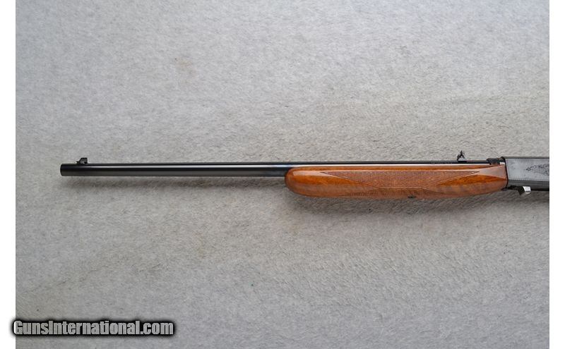 Description: This Browning Automatic Rifle Model is a takedown semi-auto rifle in .22 Long Rifle Cal. It has a 19.5 inch barrel. A blade front sight and folding adjustable notch middle sight. The receiver is dovetailed. The butt stock is a checkered grip walnut pistol grip with a right side loading port. The forearm is a checkered grip walnut beavertail style. Made in Belgium. .22 Long Rifle SOLD Chambers: 10 round magazine. Metal Condition: Very good. A little minor freckling on the receiver. Wood Condition: Excellent. A few very minor marks. Bore Condition: Excellent. Barrels: 19.5 inch. Stock Dimensions: LOP 13.75 inches. Fore End: Checkered grip walnut beavertail style. Butt Pad: Grooved steel plate with a loading port. Weight: 5 lb. 0 oz. Sights: Blade front. Folding adjustable notch middle. Receiver is dovetailed. Item Location: Richfield, WI |