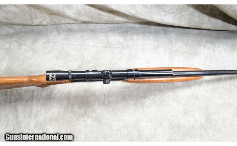 Description: This Belgian Browning was manufactured in 1969 and is a nice little rifle at a great price. It has dark-ish blond wood and metal parts with very good blue. There are a few dents and nicks on the wood indicative of a gun that has been used by a shooter. .22 Long Rifle SOLD Chambers: "10 round, in stock. Metal Condition: Very good. A small amount of wear around the muzzle. Wood Condition: Good to very good. There are some small dents and a few scratches indicative of a shooter's rifle. Bore Condition: Bright and shiny with good rifling. Barrels: 19 inch Triggers: Factory trigger. Stock Dimensions: 13-7/8 inch LOP. Fore End: Matching dark blond beavertail. Butt Pad: Steel plate Weight: 5 lb - 6 oz Sights: "Bead fore sight, Scoped with a Monoscope 4x15 nitrogen filled scope. Item Location: Rogers |