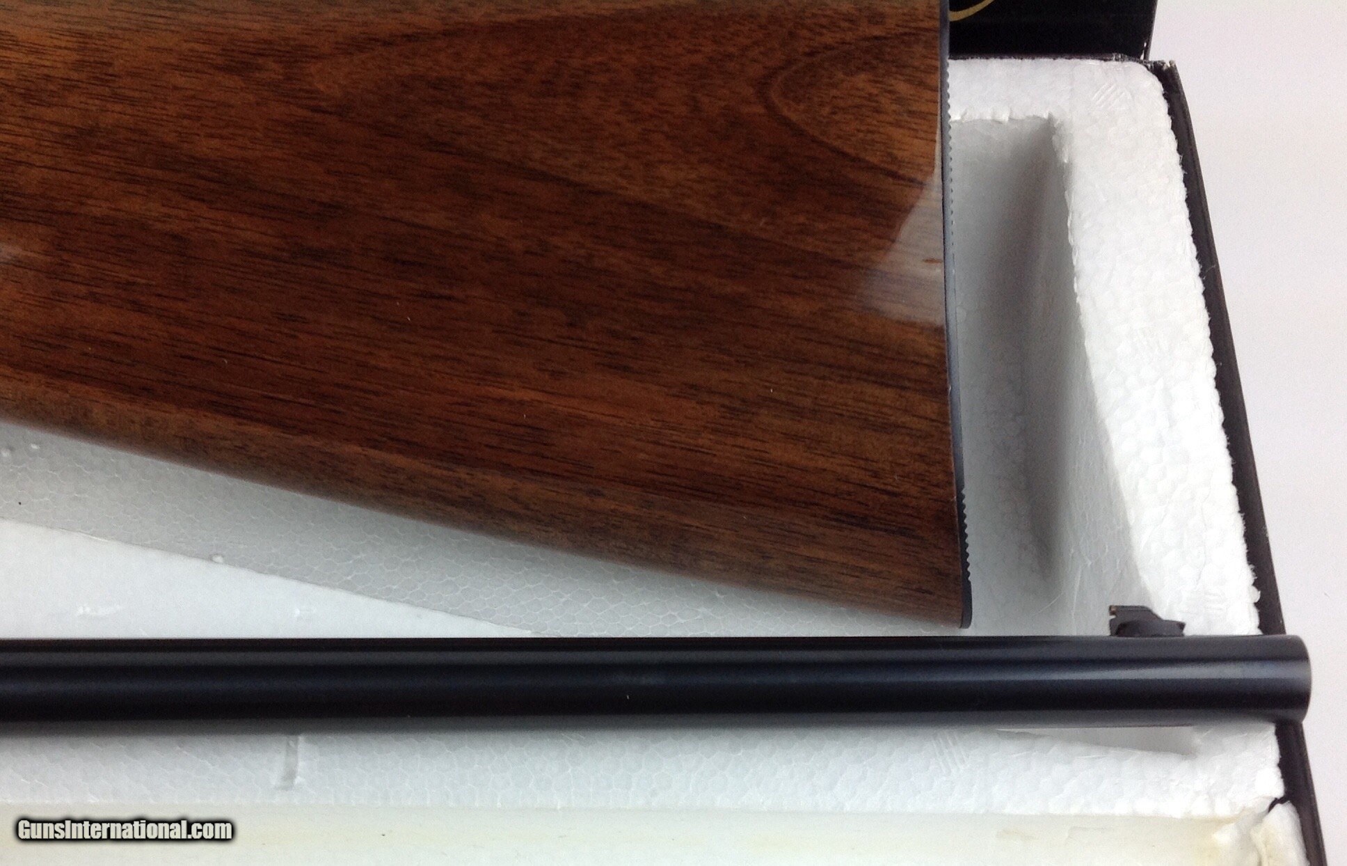 Description: This beautiful Browning was manufactured in 1973, in Belgium, the last year of the Belgium 22 Brownings. It is like new in the box. Rifle is serial numbered to the box which is in excellent condition also. I am the second owner of this rifle and never fired it, when purchased I was told it was unfired. I see no indication it has been. I see one small compression mark on left side of stock edge next to the butt plate. It may have come from the factory that way, lacquer finish is not broken. Very rare to find one of these beautiful little Belgium Brownings in this condition in the original box. Ships to your FFL for $35.00 SOLD |