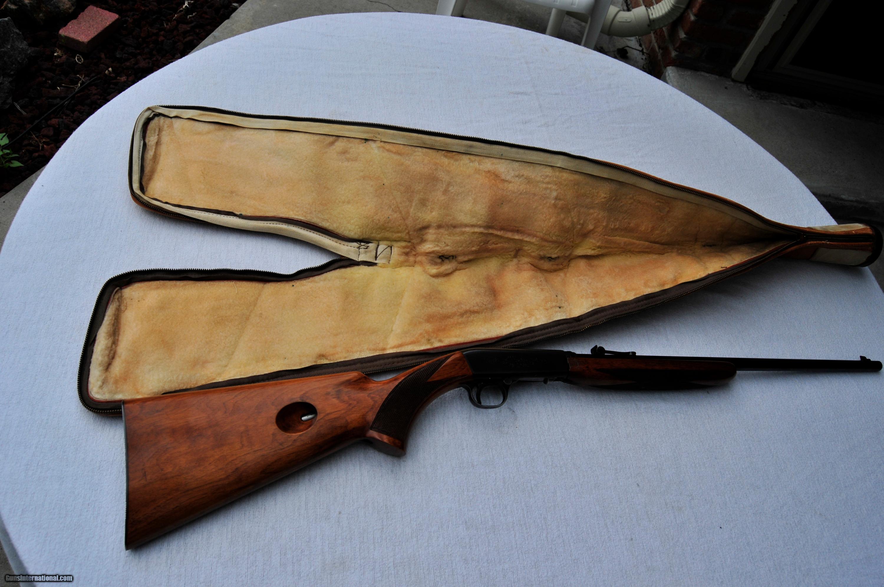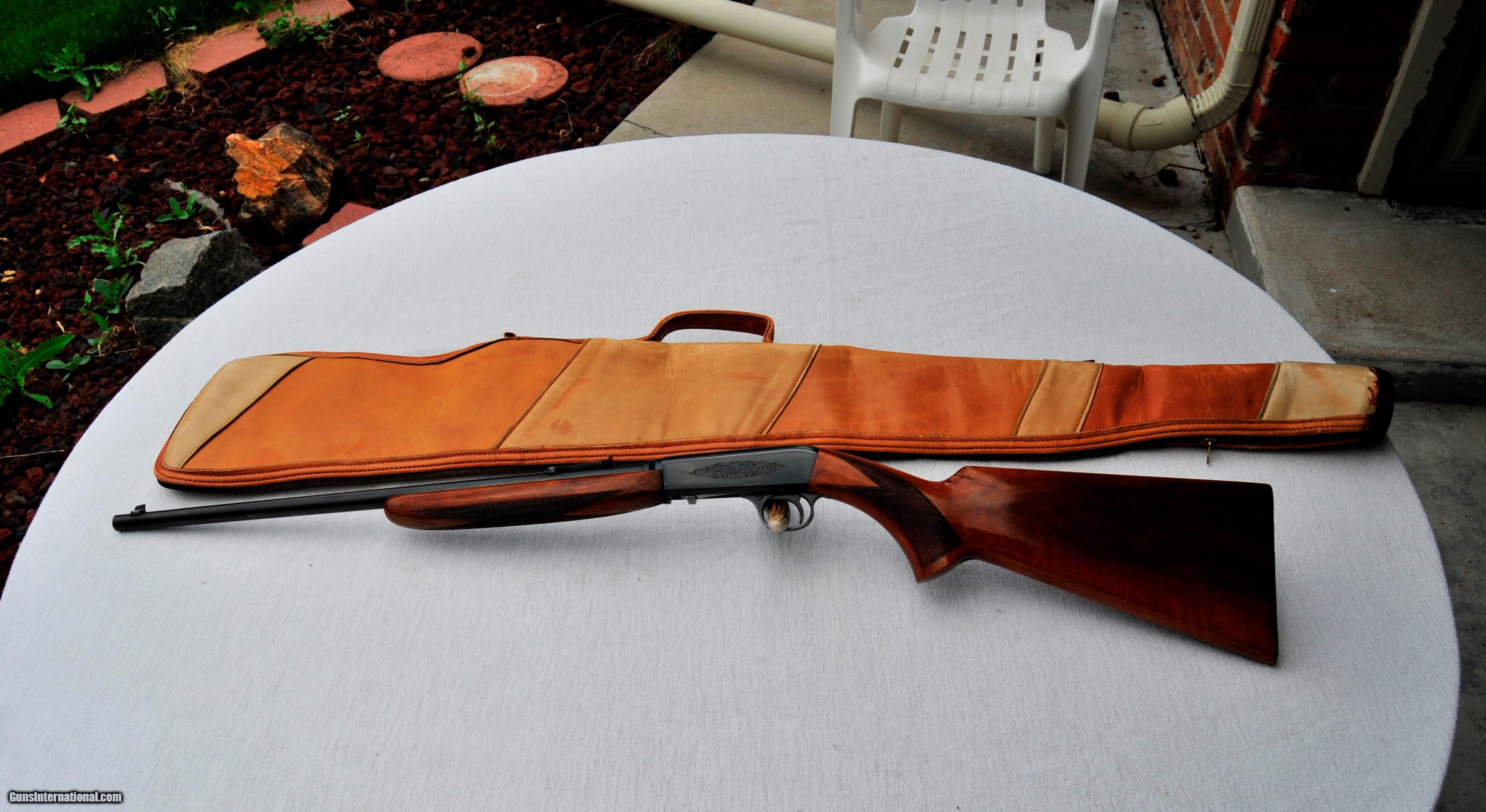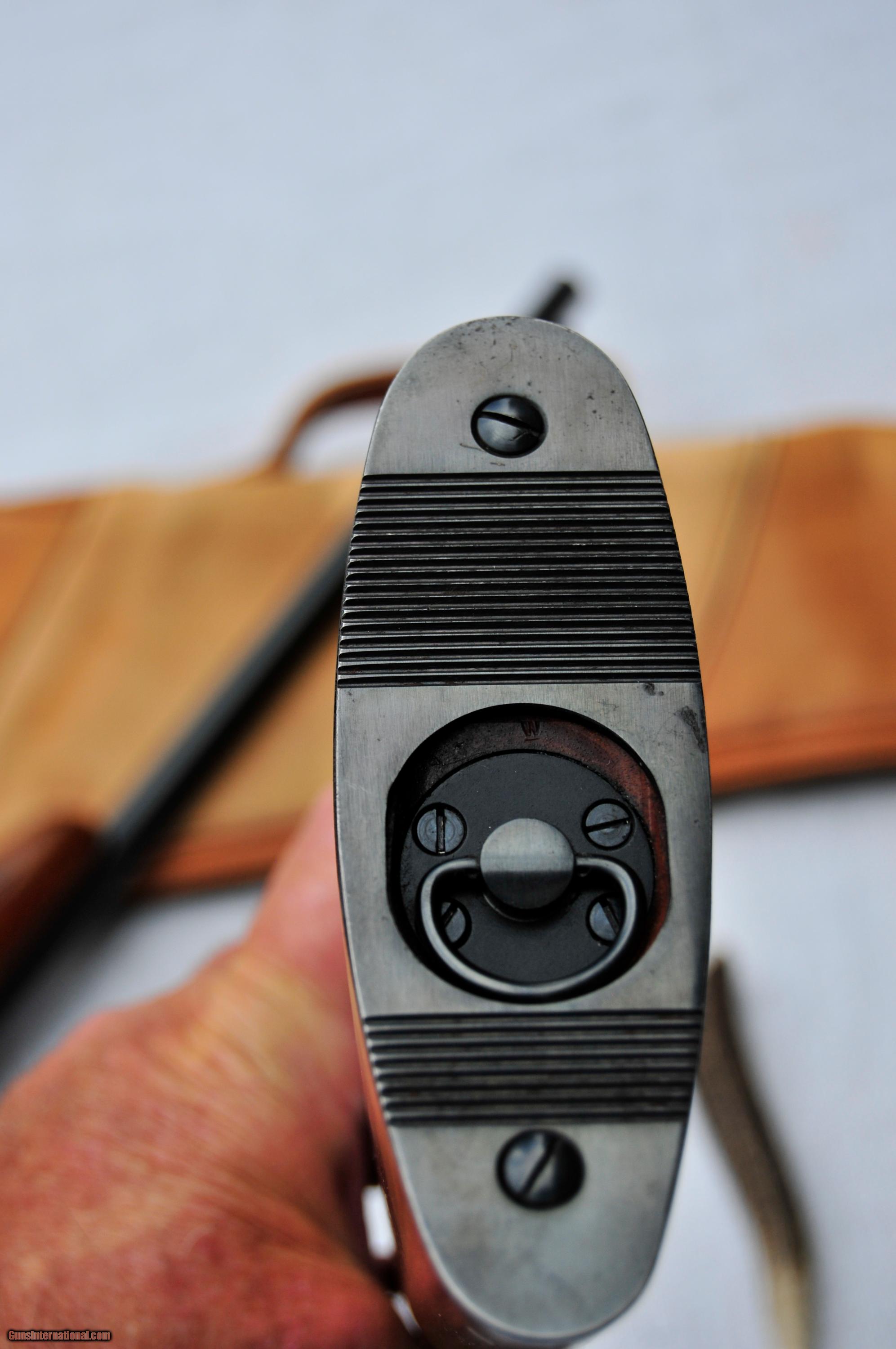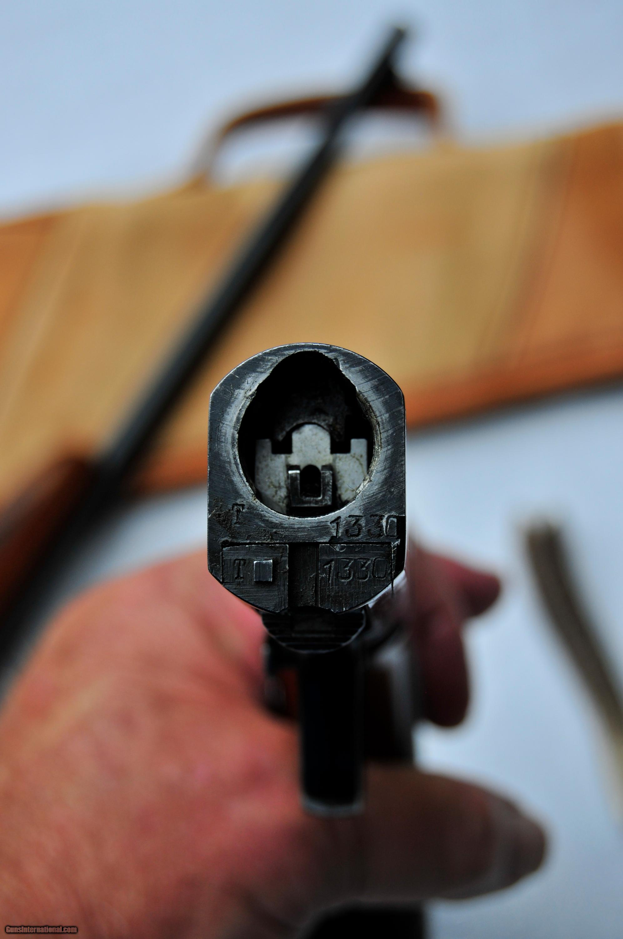 Description: Early rifle with low serial number-T1330-Browning 22 lr 1956 rifle in excellent condition all factory original. Blue is 98% no rust or pitting, wood is 97% with no cracks or gouges. Bore is shiny and bright with strong rifling, no rust present. Receiver is non grooved with strong engraving. Comes with Browning leather soft case, in very nice condition -has some minimal use stains on the outside. Please see pics. Shipping is $35.00. Payment by Certified Bank Check, or U.S. Postal M.O. No sales to Calif. If you have questions, please ask. SOLD Manufacturer: Browning Model: 22 Semi Auto Serial Number: T1330 |