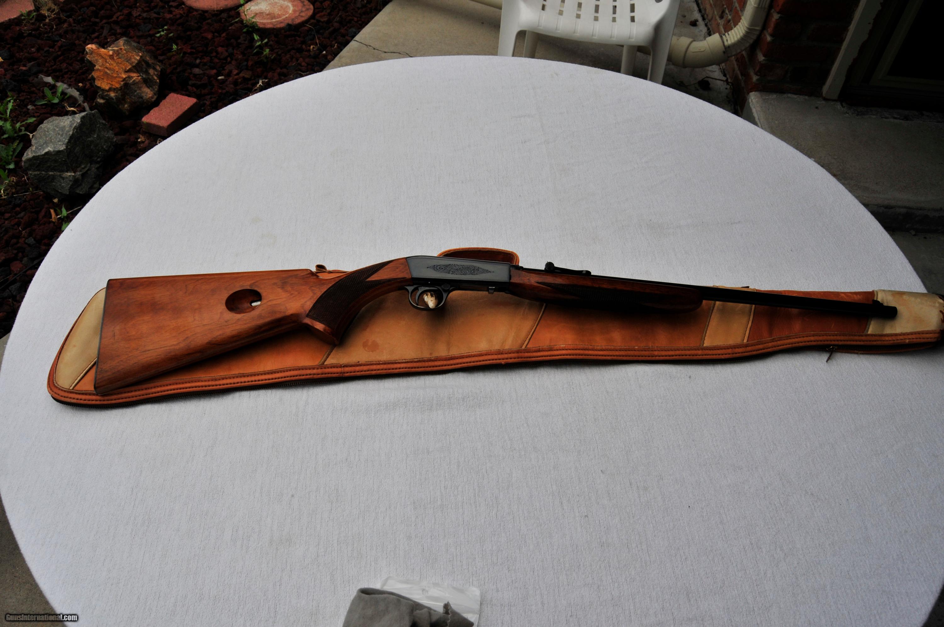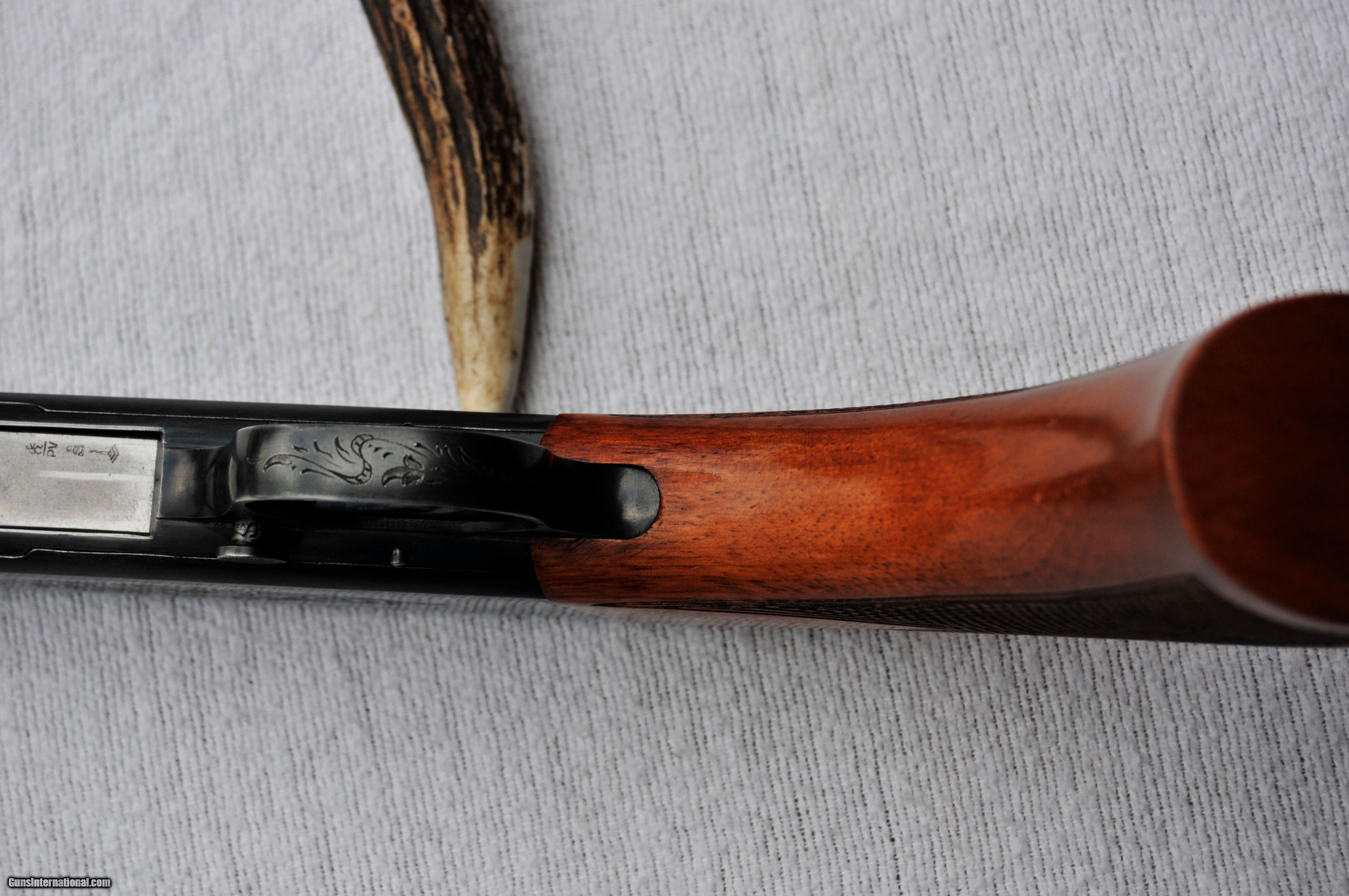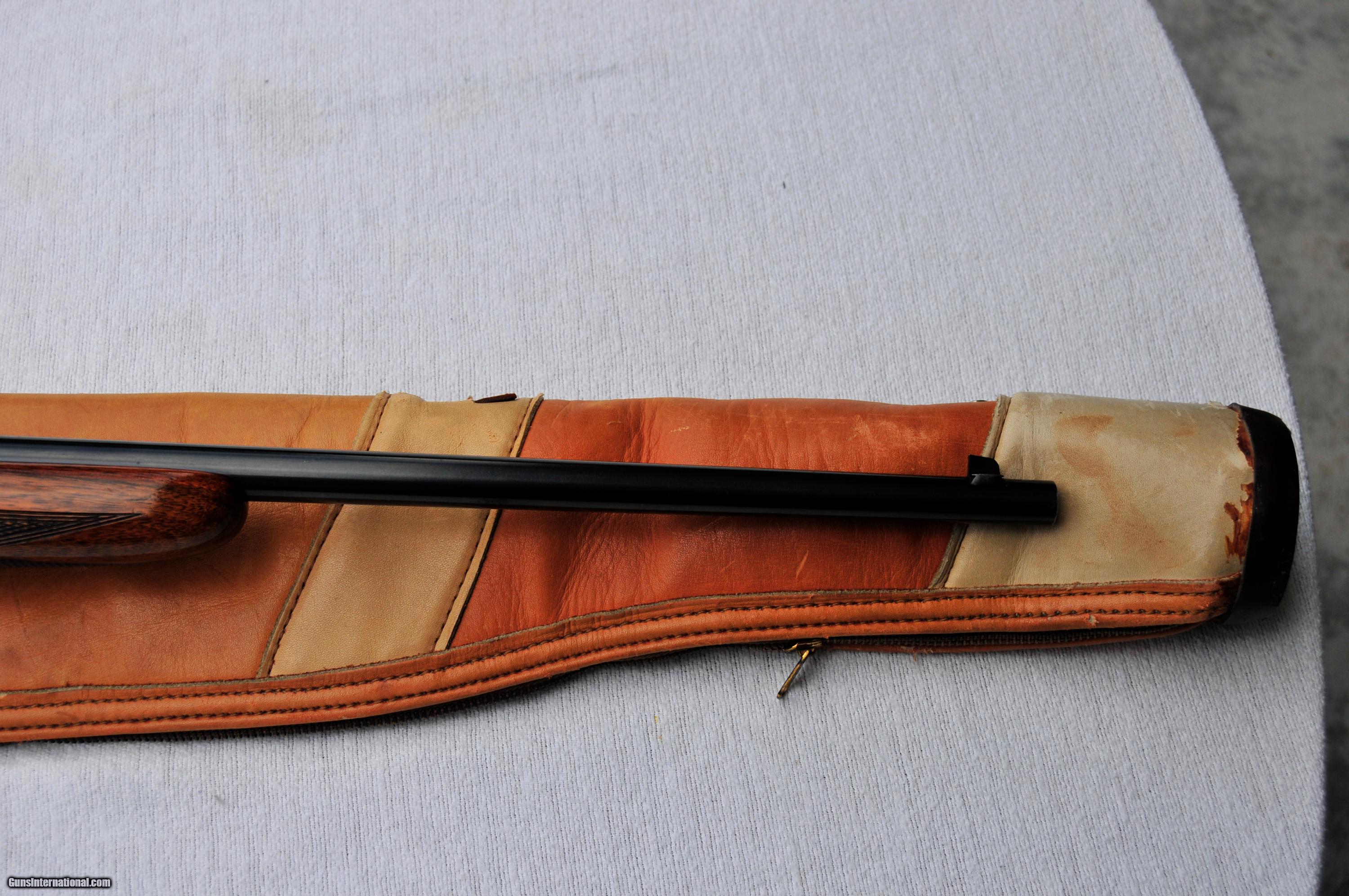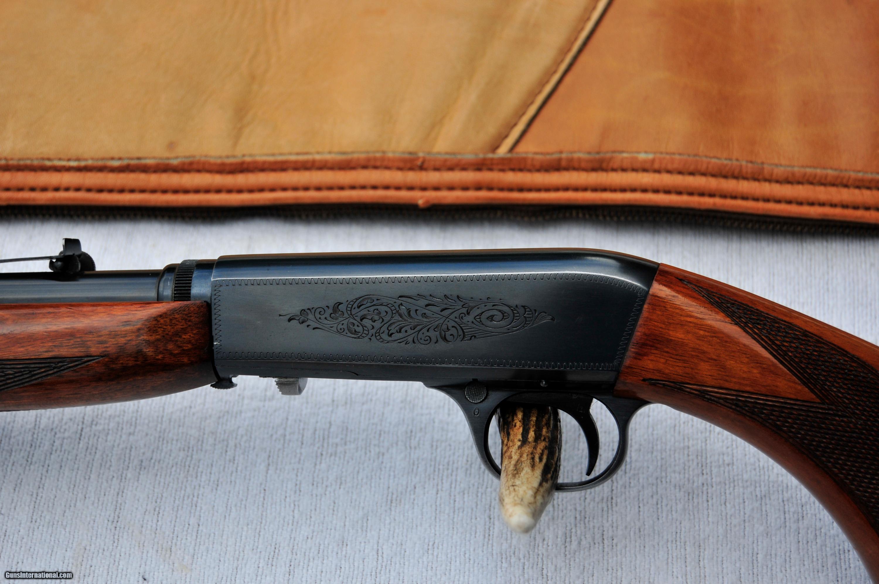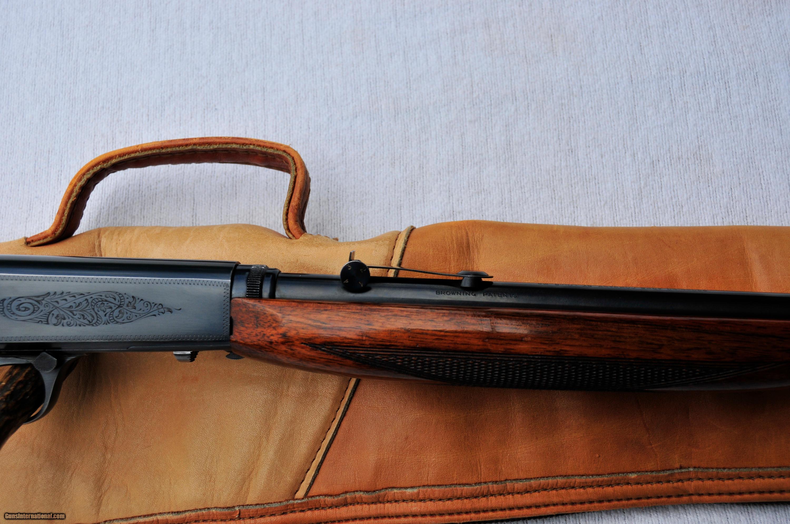 Description: Early rifle with low serial number-T1330-Browning 22 lr 1956 rifle in excellent condition all factory original. Blue is 98% no rust or pitting, wood is 97% with no cracks or gouges. Bore is shiny and bright with strong rifling, no rust present. Receiver is non grooved with strong engraving. Comes with Browning leather soft case, in very nice condition -has some minimal use stains on the outside. Please see pics. Shipping is $35.00. Payment by Certified Bank Check, or U.S. Postal M.O. No sales to Calif. If you have questions, please ask. SOLD Manufacturer: Browning Model: 22 Semi Auto Serial Number: T1330 |