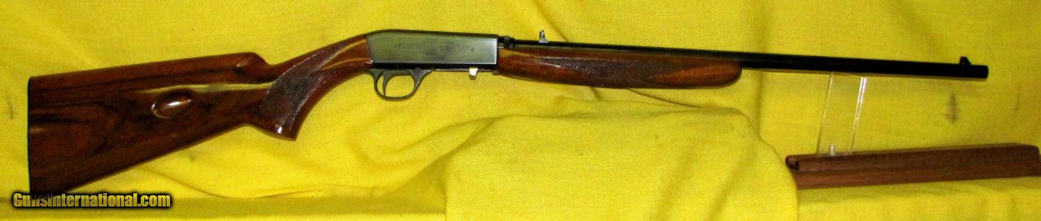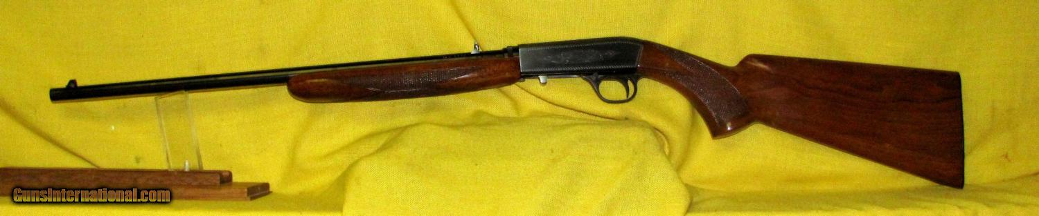 Description: BROWNING (BELGIUM) model 22 SEMI AUTO in .22 LR CAL., with 19" barrel. Color BLUE. BROWNING BELGIUM MODEL 22 SEMI-AUTO, TUBE FEED, WOOD EXCELLENT, MIRROR BORE, 98% ORIGINAL FACTORY BLUE, LIKE NEW CONDITION. OUR NEW STOCK # D31146 Condition 98%. Serial number 3T66628. SOLD |