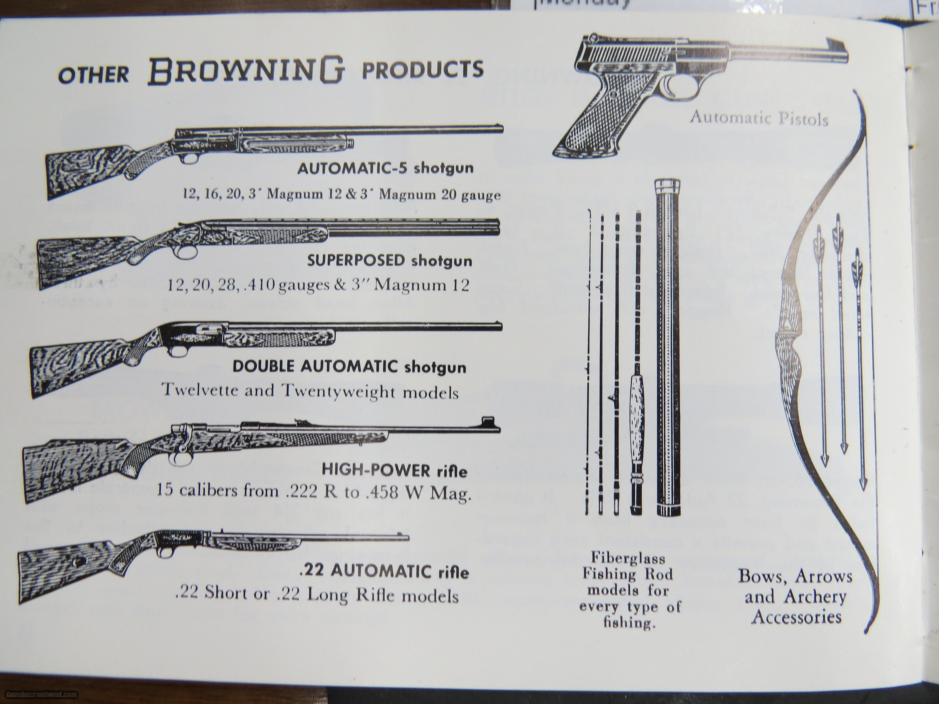 Description: This is a very Nice Grade 2 custom shop small game 22 Semi Auto Rifle with the custom case and original paperwork with warranty card 1967 Belgium vg plus a couple of very small dings in the wood looks like the barrel rested on the wood at some point. not perfect but very very nice SOLD Manufacturer: Browning Model: automatic 22 Caliber Info: 22 Condition: very good Metal Condition: good Wood Condition: good Bore Condition: very good |
