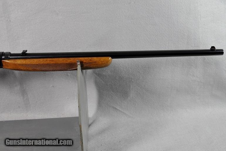 BARREL: 19" barrel retains 100% original blue in 100% condition, scarce hard to find open rear sight which is adjustable for windage, factory drilled and tapped for scope, SHINY MINT BORE,