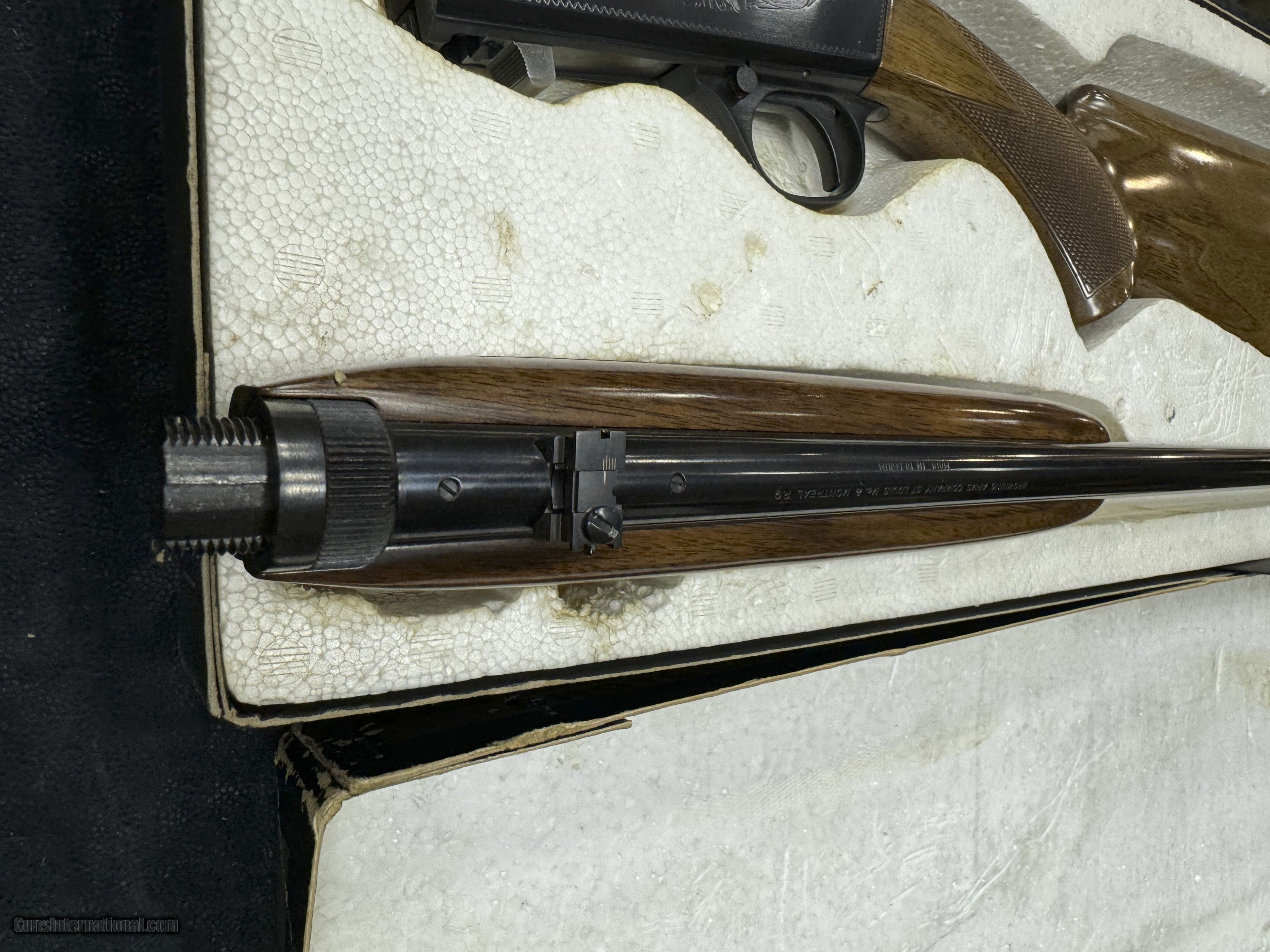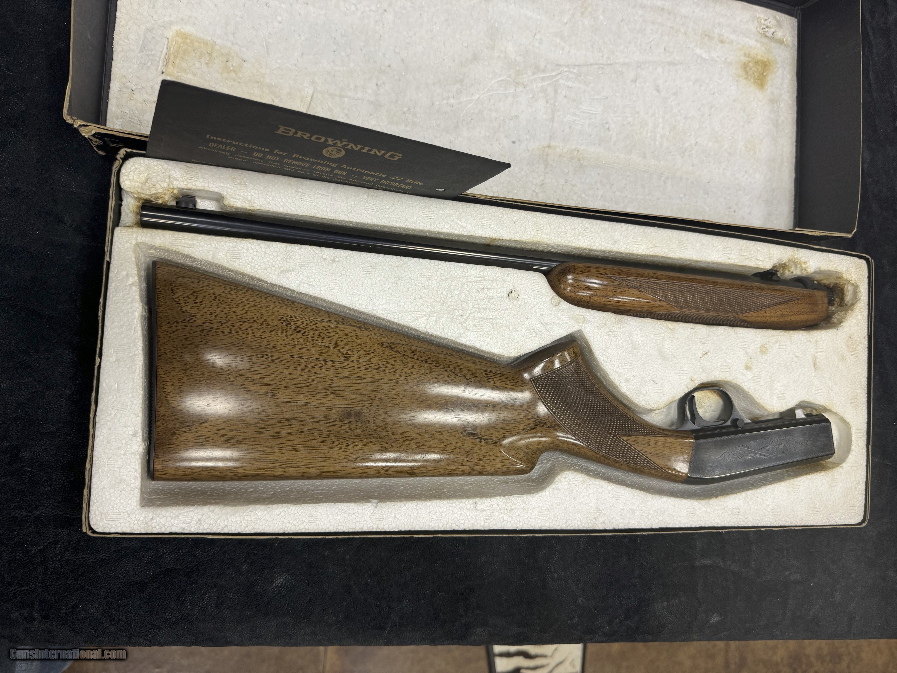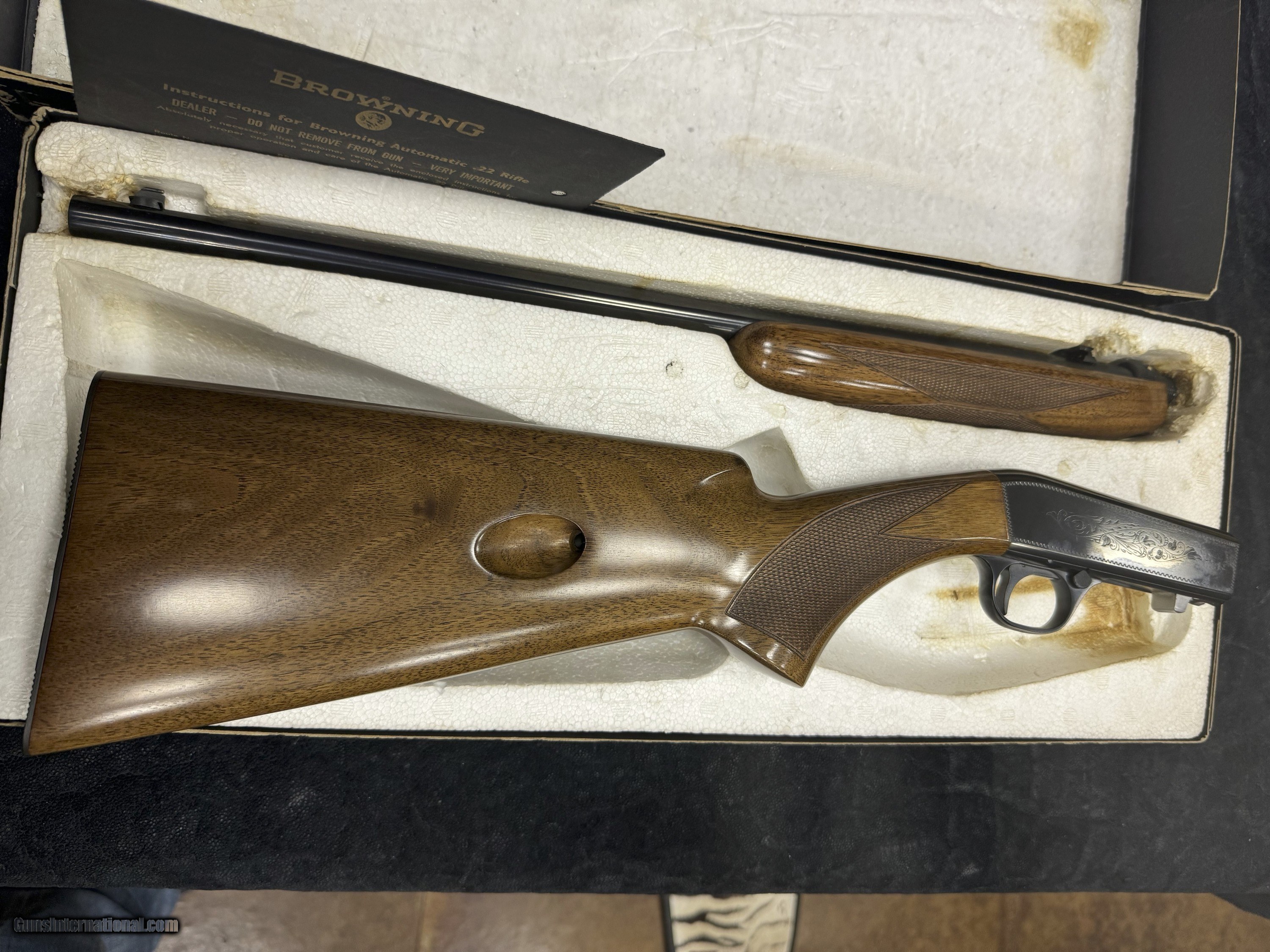 Description: Browning (Belgium) Grade I, 22 Auto Take-Down, Appears to be unfired in original box, 19 Inch Barrel, Adj. Sights. S/N 69T 30659 SOLD ! SOLD |