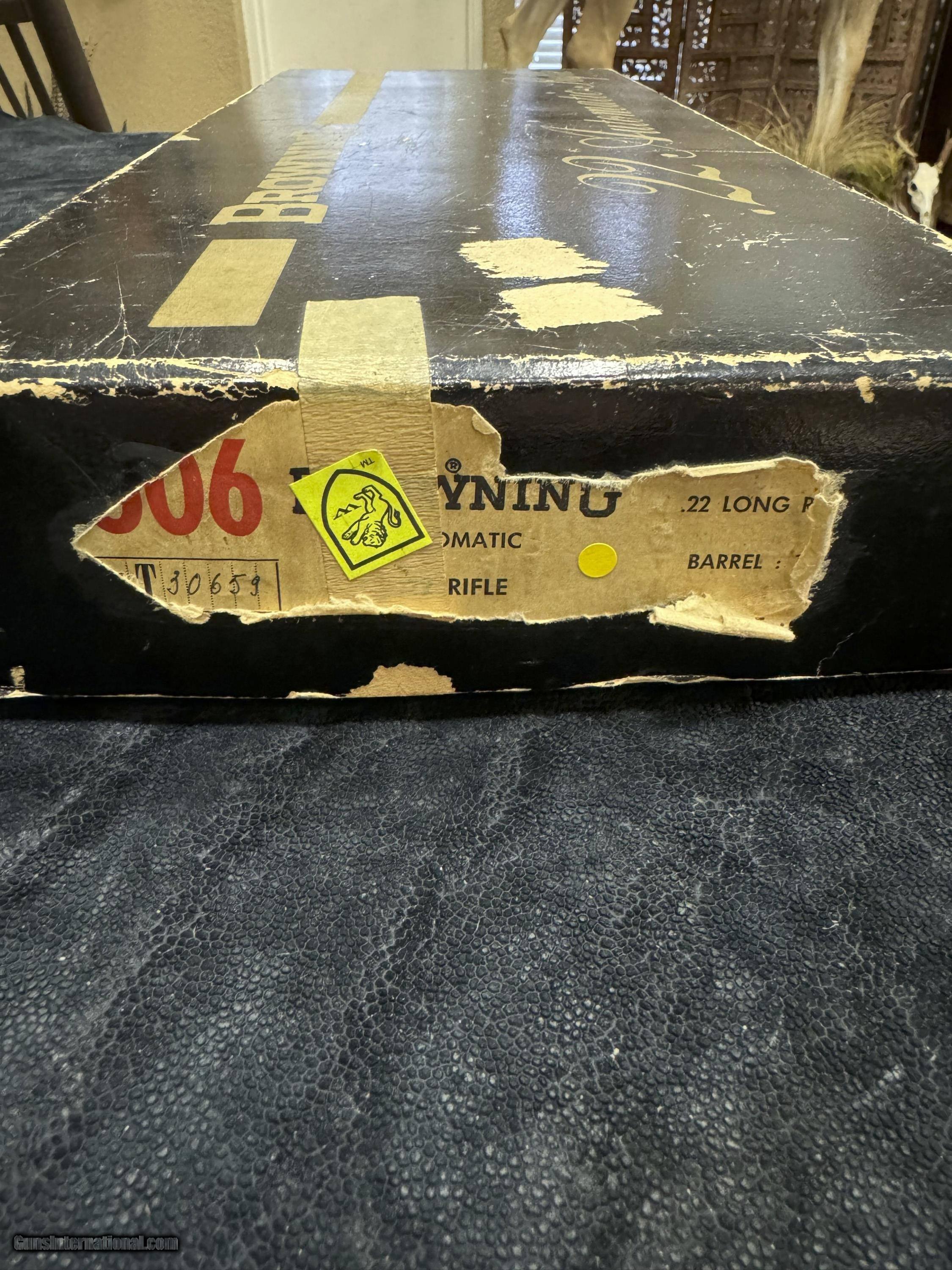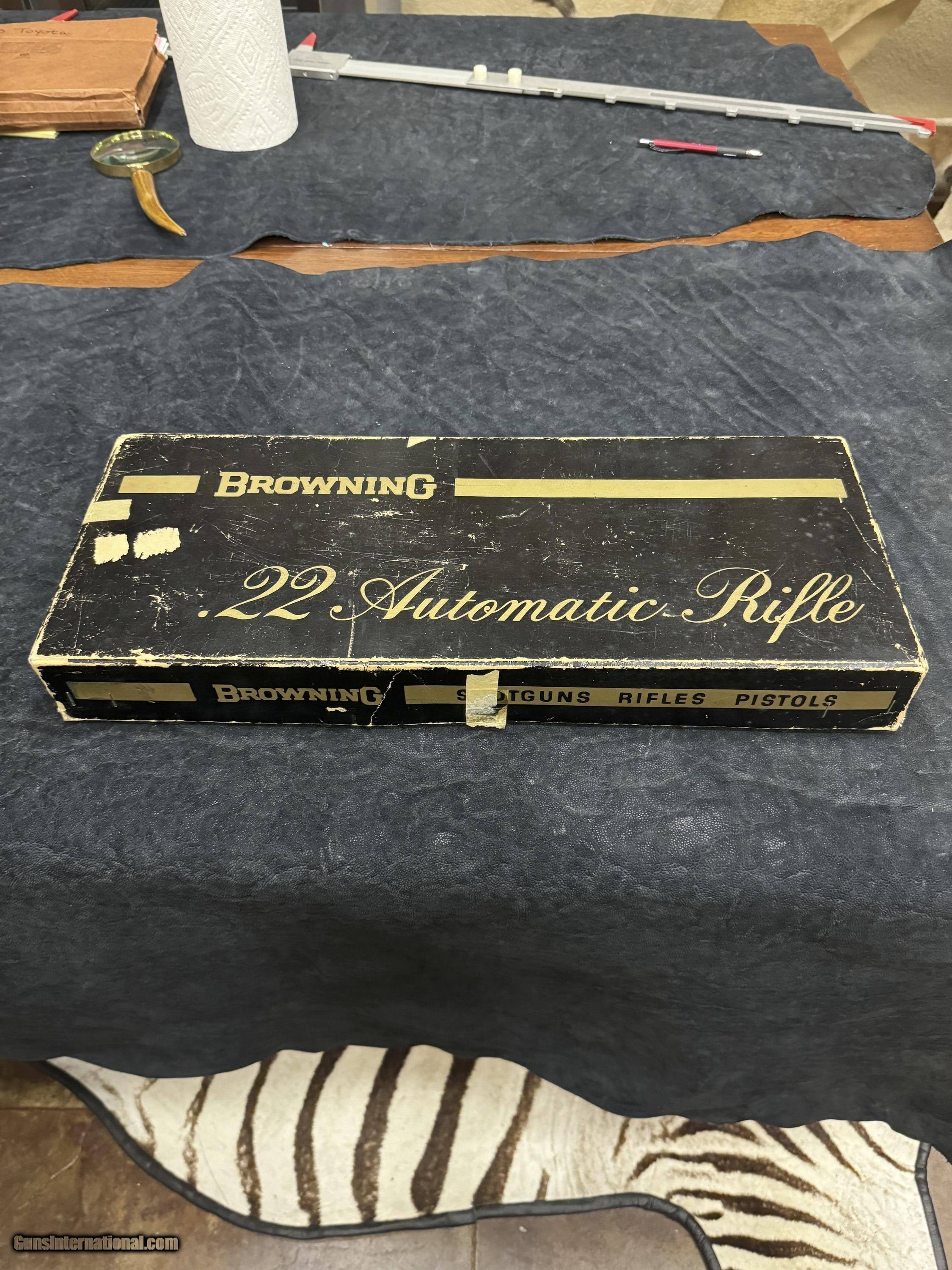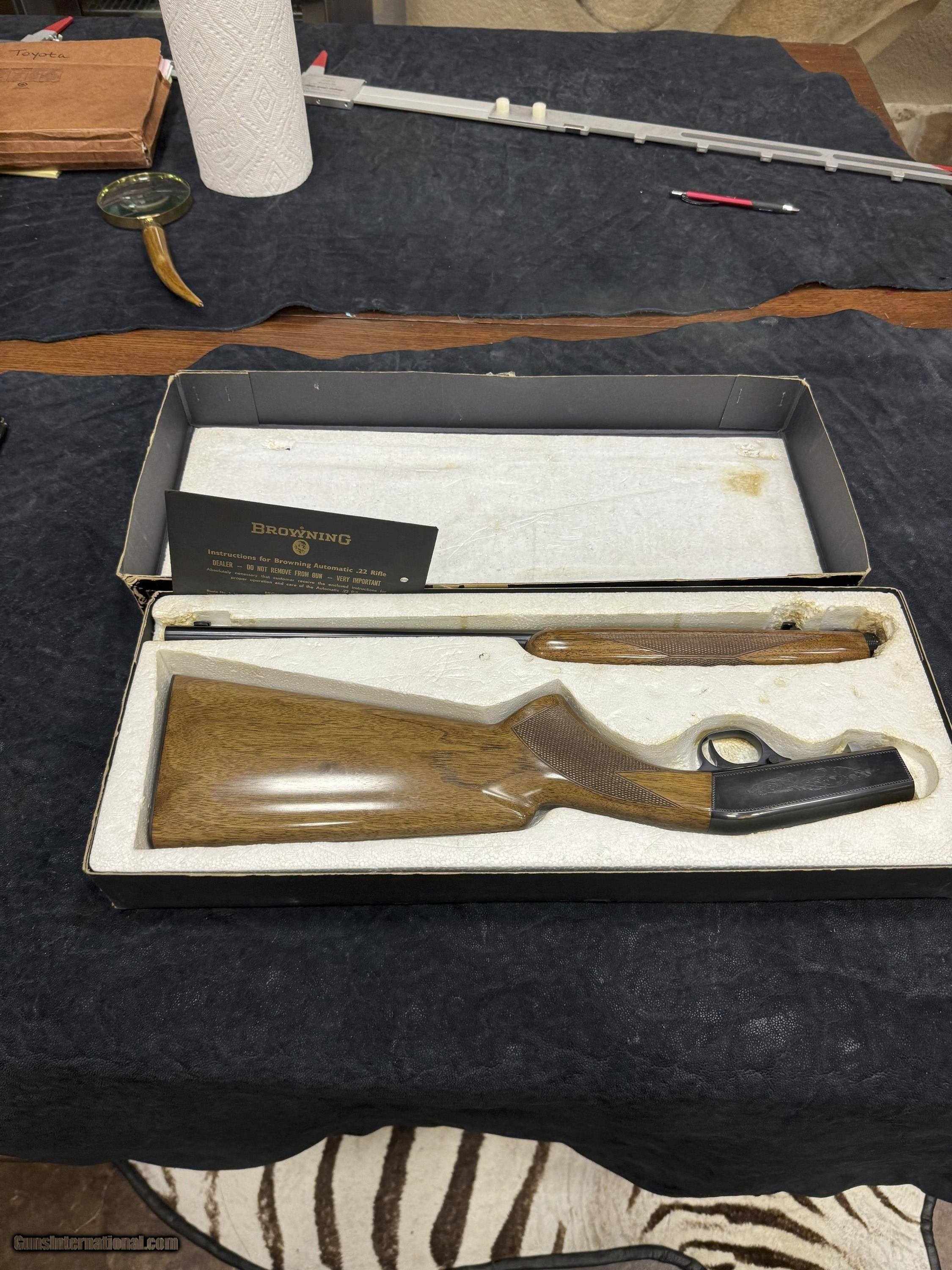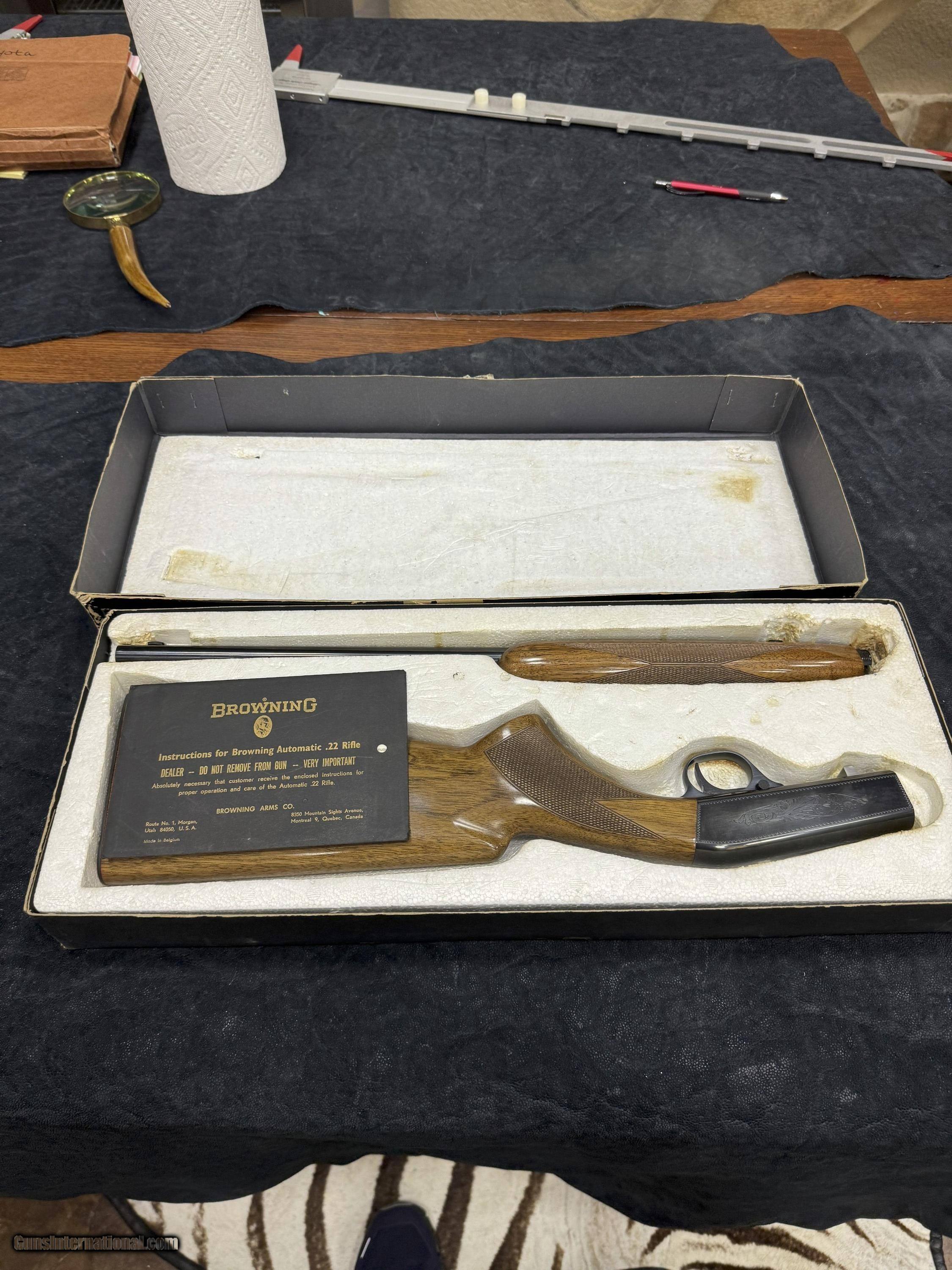 Description: Browning (Belgium) Grade I, 22 Auto Take-Down, Appears to be unfired in original box, 19 Inch Barrel, Adj. Sights. S/N 69T 30659 SOLD ! SOLD |