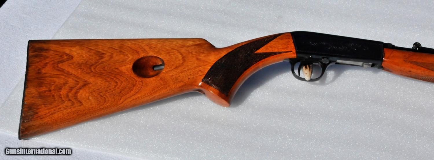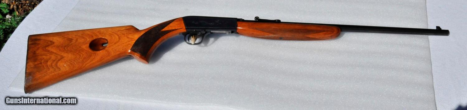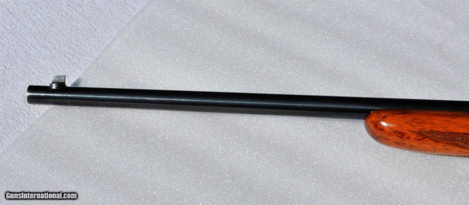 Description: Browning Belgium Wheel Sight 22 LR made in 1958. All original rifle, with excellent bluing at near 98%. Rifling is shiny and clean with strong rifling present. Grooved receiver with no signs of ever having a scope installed. Minimal wear on the slide indicating minimal shooting. Wood is in nice condition with strong checkering, no cracks present. Some loss of finish on stock at the butt plate. Serial number on butt plate matches serial number on receiver. Small rust shown on receiver bolt face (pic 9) cleaned off with rag and oil, no rust anywhere else on rifle. US Postal Money Order or Certified Bank Check. Payment must be received within 5 business days. No sales to Calif. Shipping is $25.00, insurance is extra. SOLD Manufacturer: Browning Model: Semi Auto Serial Number: T37732 Caliber Info: 22 Barrels: 19 |