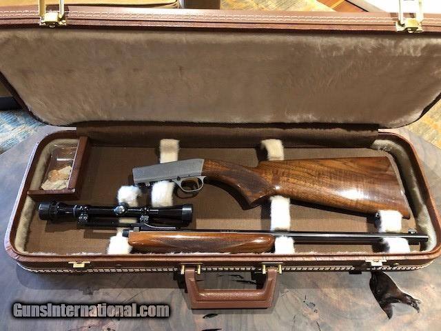 Description: Browning Grade II 22LR Take Down.Made in Japan in travel case. Great wood with only a few handeling marks SOLD Manufacturer: Browning Serial Number: 38871T57 Caliber Info: 22LR Condition: 99% Metal Condition: 100% Wood Condition: 99% Bore Condition: bright and blue |