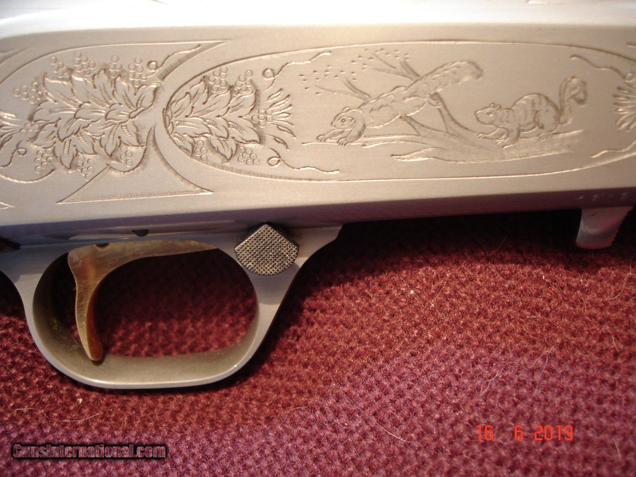 Takedown Rifle .22 LR Cal. Mint in Box, MFG 1987 Beautiful dark Walnut Stocks, Hand Engraved Satin Silver receiver