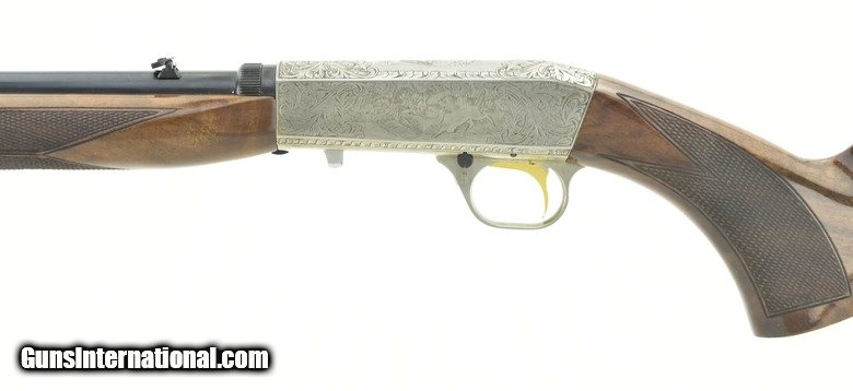 Description: Browning Grade III Auto .22 Short caliber rifle. Beautiful Belgian made Grade III custom shop rifle, in rare .22 Short caliber signed by the engraver, G. Lieben. According to Browning records it was sold in 2003. Has a few light handling marks, overall excellent condition with factory hard case.
