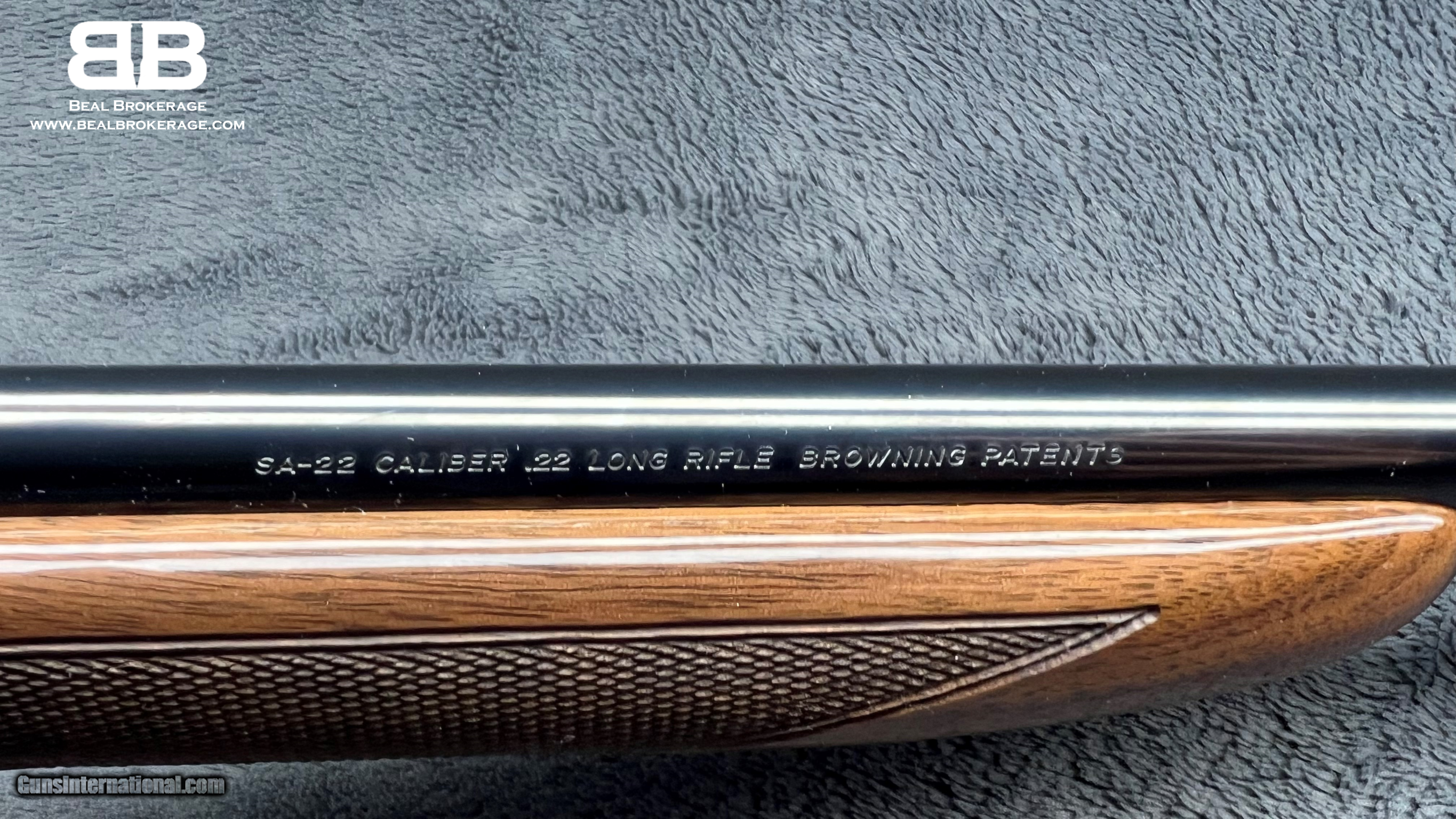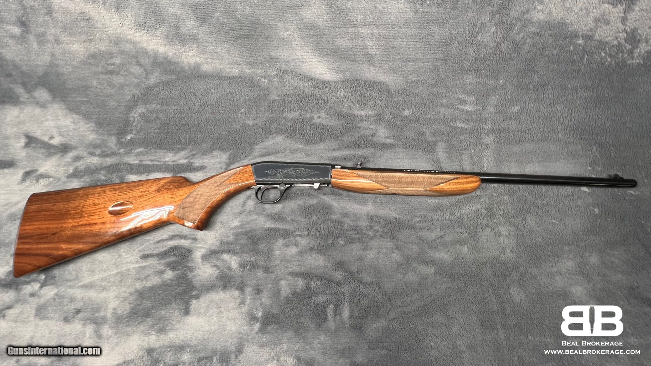 Description: .22LR - Grade 1 - 19" barrel. One of John M. Browning's last designs, the Browning SA-22 Semi-Auto Rimfire Rifle has stood the test of time, providing shooters with a slim, lightweight, ultra-reliable, takedown .22 rifle with extremely innovative features. The SA-22's receiver is machined from solid steel, and ejects cases out the bottom making it naturally ambidextrous. The receiver on the Grade I model is scroll engraved and has a high polished blued finish. The barrel also has a high polished blued finish, comes with a folding rear sight and a brass bead front sight, and is drilled and tapped for scope mounts. A gloss finished, checked walnut stock and forearm accentuates the SA-22's fine lines, while bringing out the beauty of the walnut and protecting it from the elements. The Browning SA-22 Semi-Auto Rimfire Rifle breaks down just in front of the receiver without tools by turning a knurled barrel nut for convenient transport and storage. Once the barrel is removed, the trigger assembly can be slid out for cleaning and lubrication. The tubular magazine is loaded through a port in the side of the stock, and unloaded by removing the follower tube from the buttstock. This is a high-grade .22 rifle for serious small game hunting, as well as training and plinking, and because of its innovative takedown design it also doubles as a survival rifle that's easy to take anywhere. • Slim, lightweight, takedown .22 rifle • Machined steel receiver • Ambidextrous bottom ejection • High polished blued barrel and receiver • Folding rear sight and brass bead front sight • Drilled and tapped for scope mounts • Gloss finished walnut stock and forearm • Breaks down without tools • Tubular magazine No international shipping on any items. We ship ASAP once payment and FFL are received. Due to current World issues some shipping delays can/will occur on occasion. Most of the time items will ship within 2-4 business days after payment & FFL received. We can be easily contacted with questions or concerns on any posted item or items won (256) 410-2053. In no event shall the seller, be liable for any damages of any kind, including without limitation, direct, indirect, compensatory, special, consequential, punitive, and/or incidental damages related to the products sold. Please ask questions if you have any concerns or ask for pictures of any areas you do not see in the detailed pictures. **Alabama residents or anyone that picks up the purchase in person will have to pay an additional 7% sales tax. SOLD Rifle Caliber: .22 Long Rifle Manufacturer: Browning Model: A22 Barrel Length: 19 |