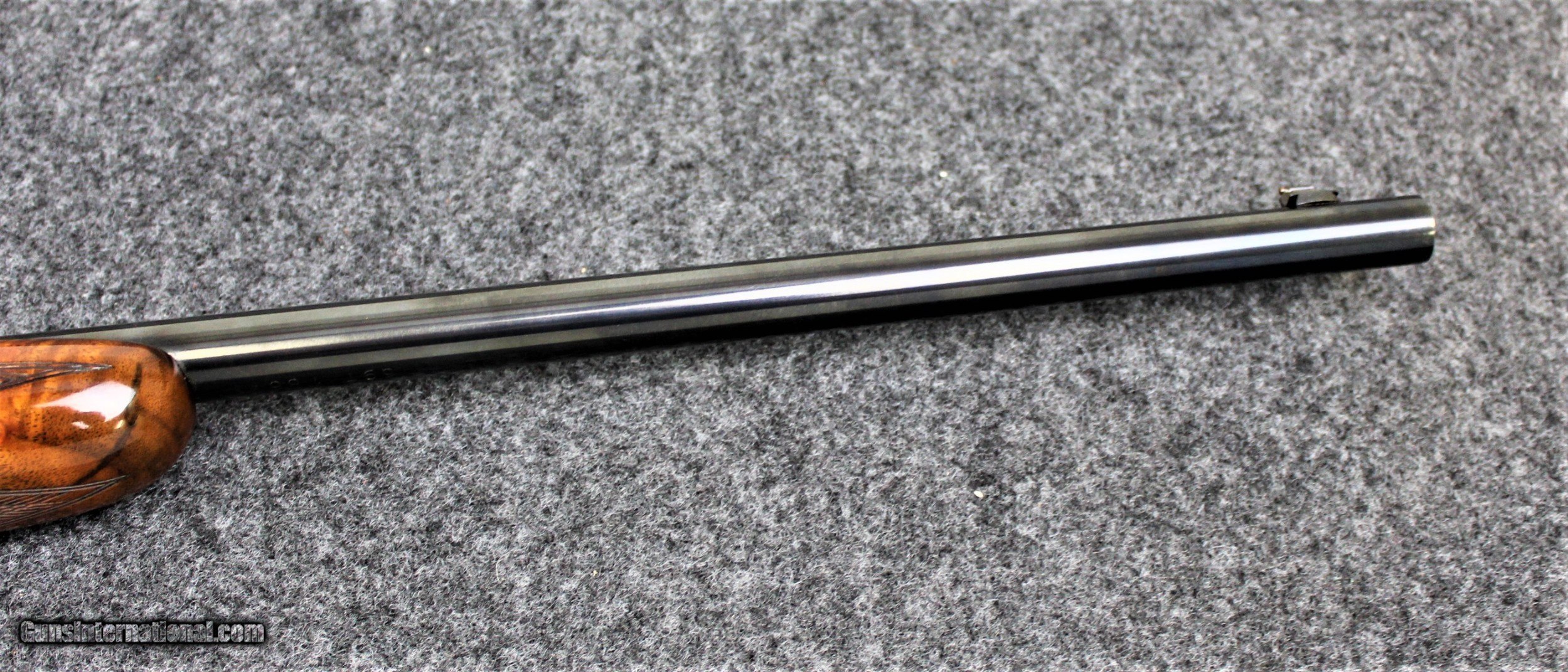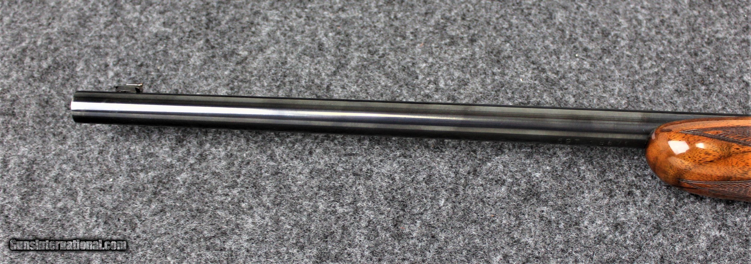 Description: Presenting a 95 per cent condition Browning Model SA-22 Engraved Grade III in caliber 22 Long Rifle. The firearm has a 19 Inch barrel. This firearm also have the leather fitted Presentation case. The firearm has minor wear on the gold trigger. This firearm is from the collection of LT. Col. Thomas D. Smith III, Olympic Gold Medal winner while a member of the US International Pistol Team in 1963, setting the worlds record that still stands after all these years. SOLD Rifle Caliber: .22 Long Rifle Manufacturer: Browning Model: SA-22 Engraved Grade III Serial Number: 69T-18671 Condition: Excellent Metal Condition: Excellent Wood Condition: Excellent Bore Condition: Excellent Action: Semi-Auto Triggers: Single Gold Trigger Stock: Checkered Walnut Butt Pad: Steel Finish: Blued Item Location: H & H Shooting Sports |