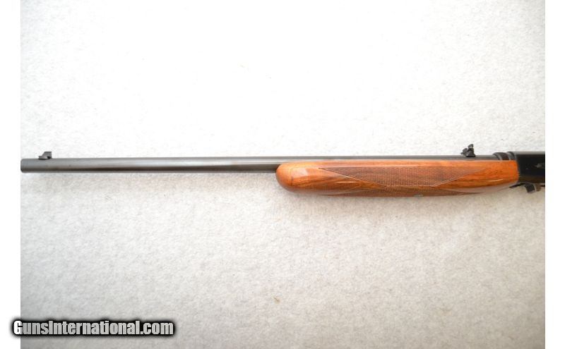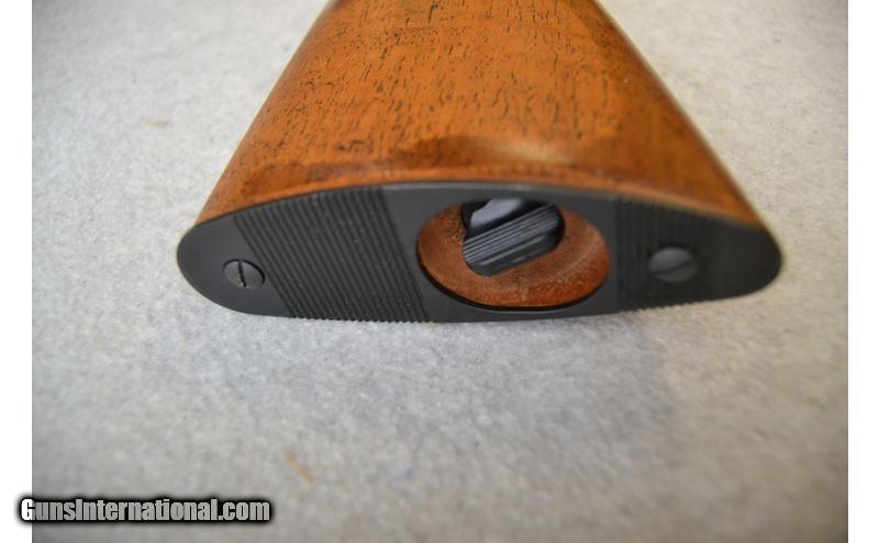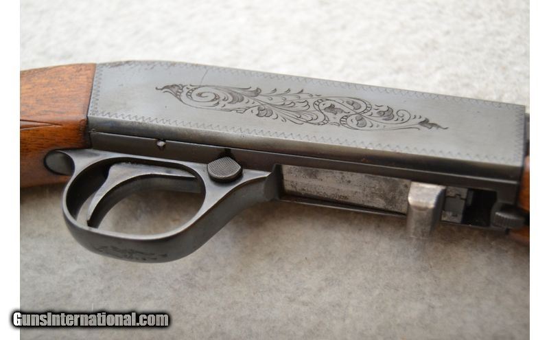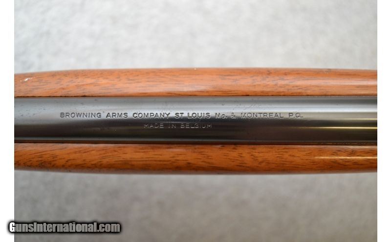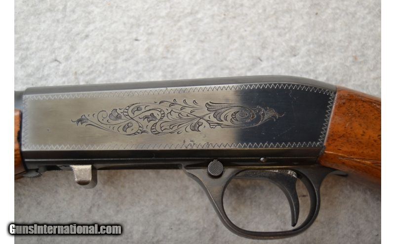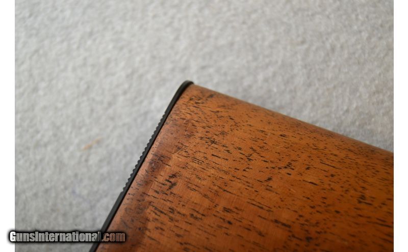 Description: Shooter grade" might be the best way to describe the overall condition of this little number. The metal on the barrel has a few small spots of surface rust and the receiver has been scratched a fair bit as well. The wood looks to have been refinished at some point as the tips in the checkering are flattened. Bore looks great with bright shine and plenty of rifling left. Rifle is of Belgian manufacture and sources indicate it was built in 1965. .22 Long Rifle SOLD Chambers: Semi-automatic fed from an internal tubular magazine. Metal Condition: Good. Wood Condition: Fair to good. Bore Condition: Excellent. Barrels: 19" Gloss blued. Triggers: Gloss blued metal with smooth surface. Stock Dimensions: 14" LOP Fore End: 3-Panels of diamond pattern checkering. Butt Pad: Black metal plate. Weight: 5 lbs. Sights: Front blade and fold down rear leaf. Receiver is grooved for scope mounting. Chokes: N/A Item Location: Green Bay |