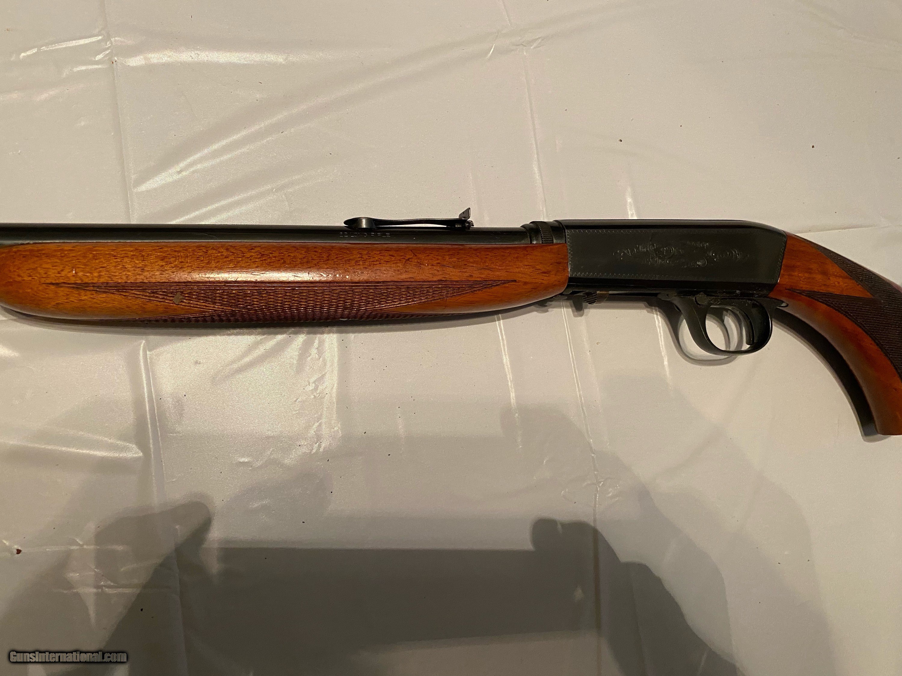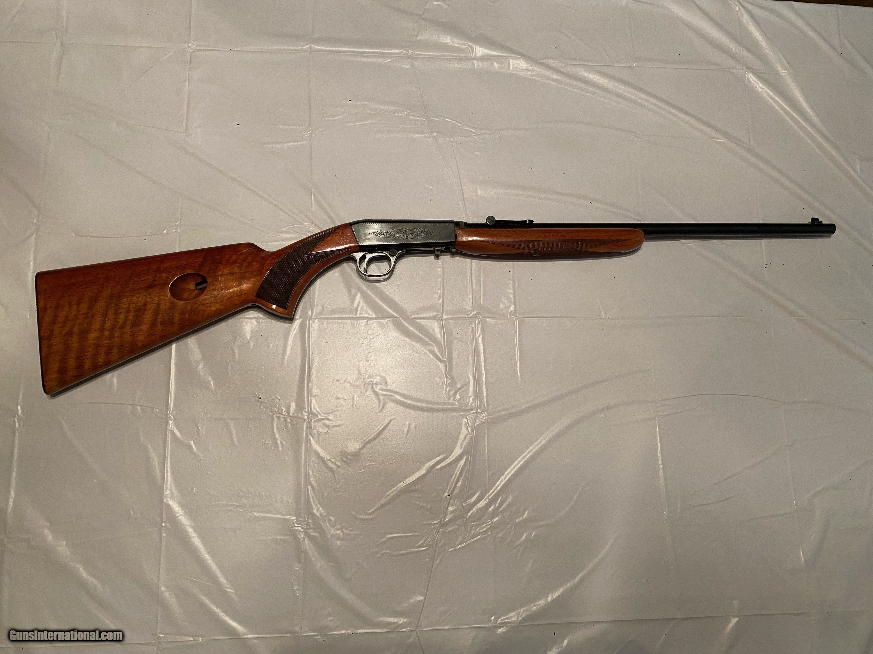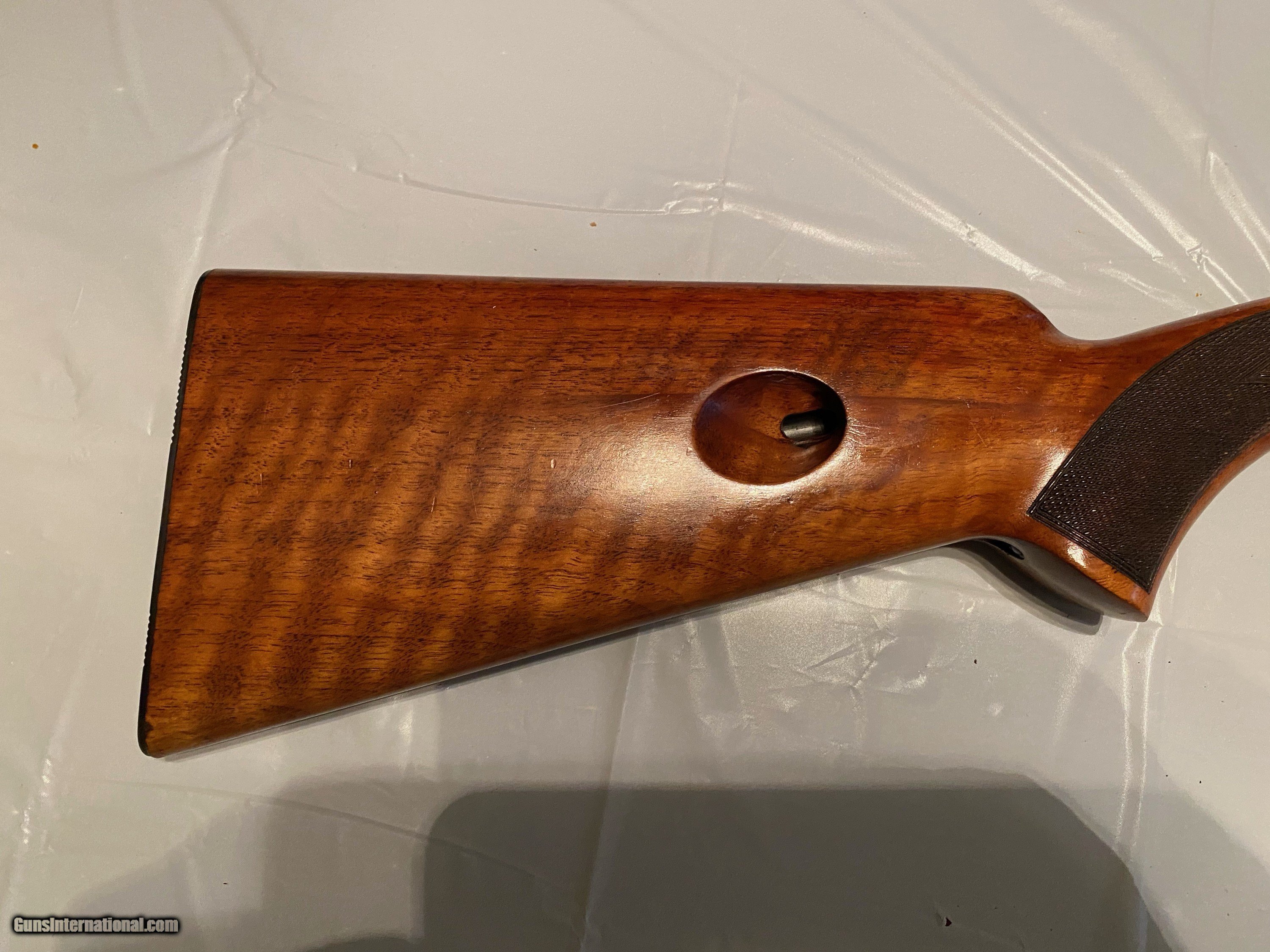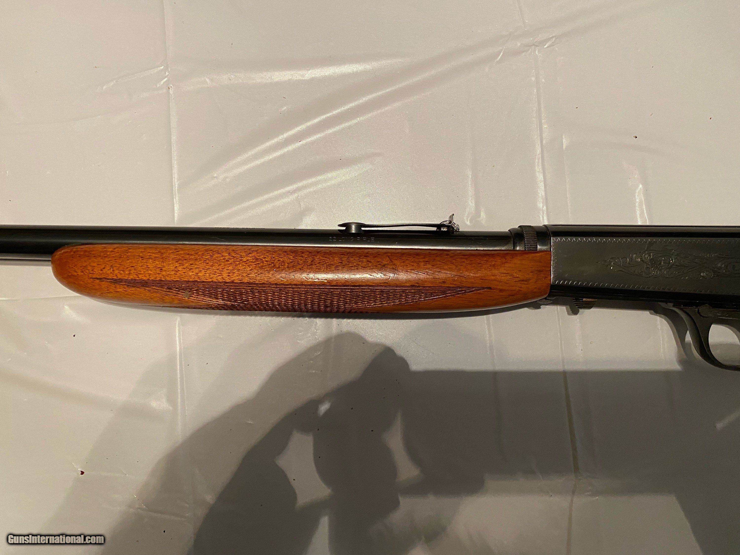 Description: For sale is a very nice Belgium Browning 22 semi auto rifle. Rifle is in very good condition, both bluing and wood. Rifle has a rare wheel( adjustable ) rear sight. No serial number is present on the rifle except on the butt plate. This makes it pre 68 manufacture. Price does not include shipping. SOLD Curio/Relic: Yes Rifle Caliber: .22 Long Rifle |