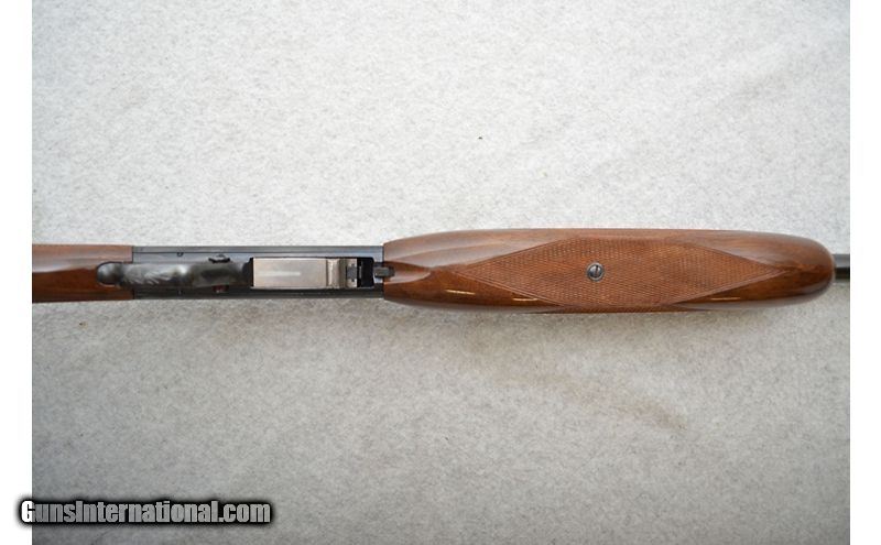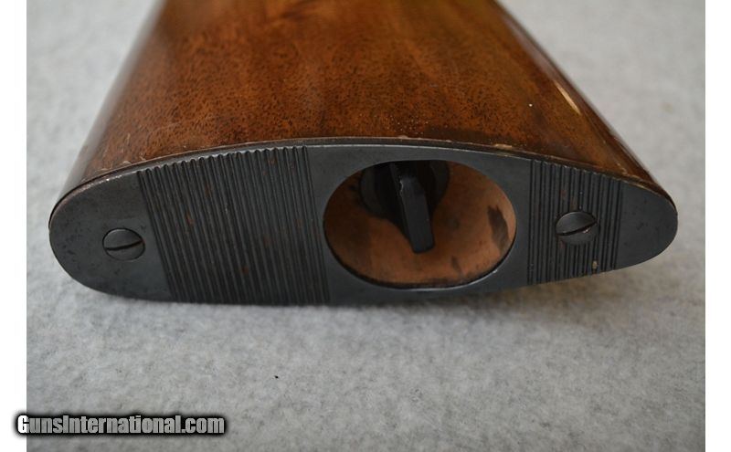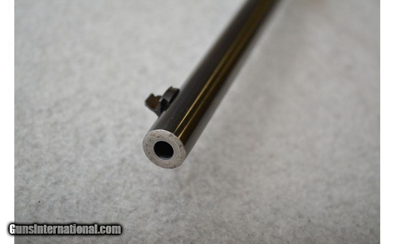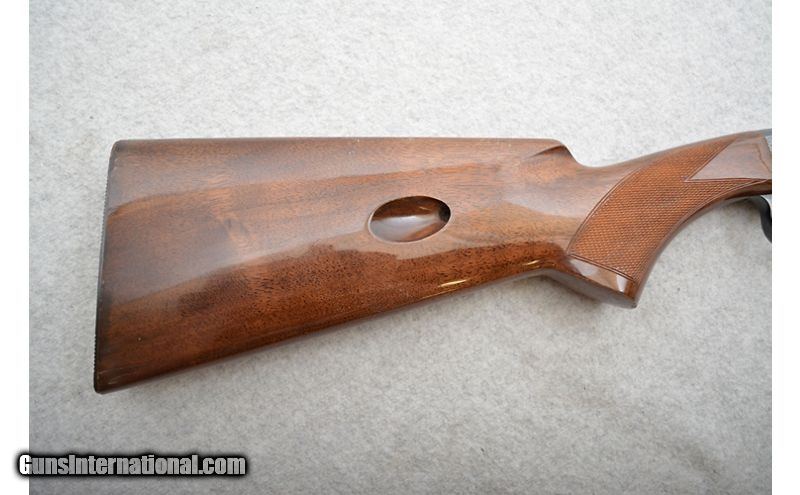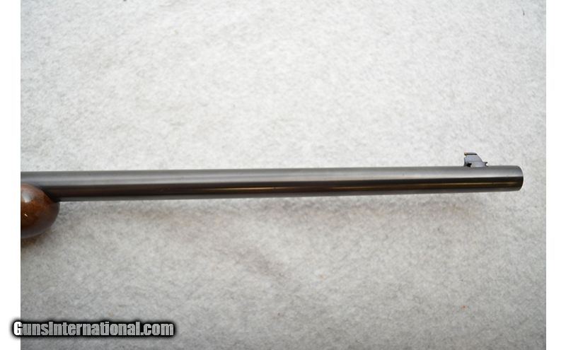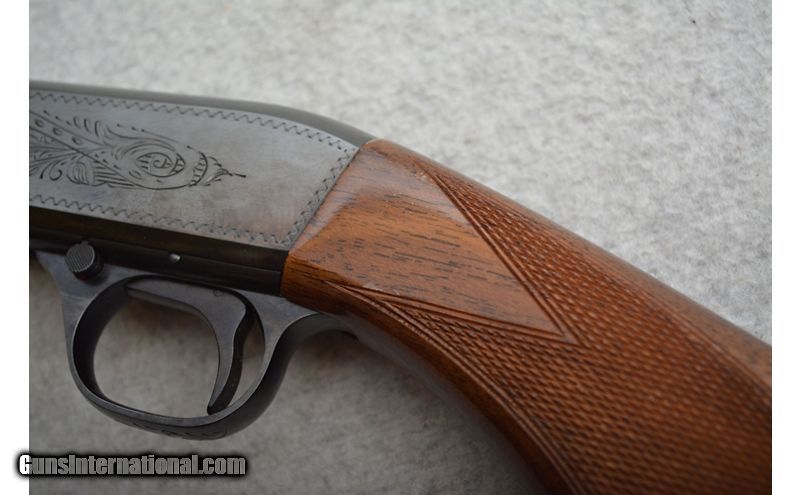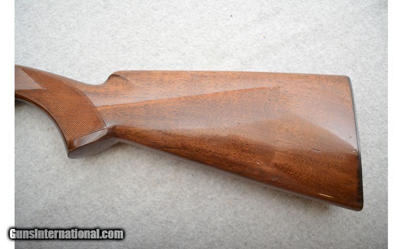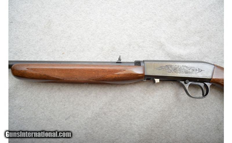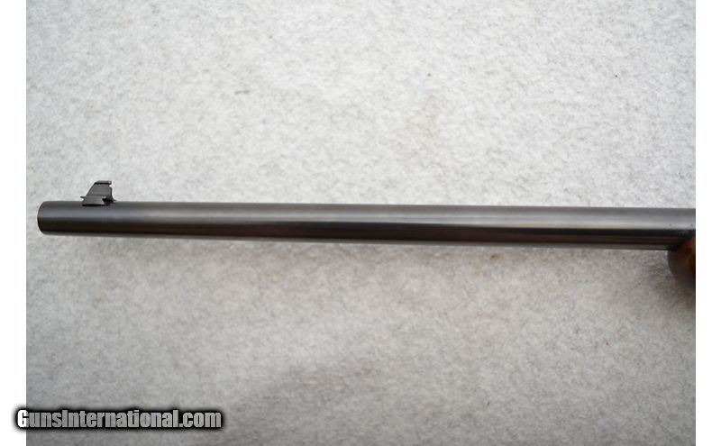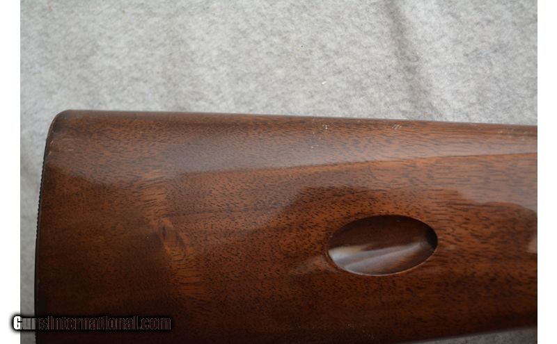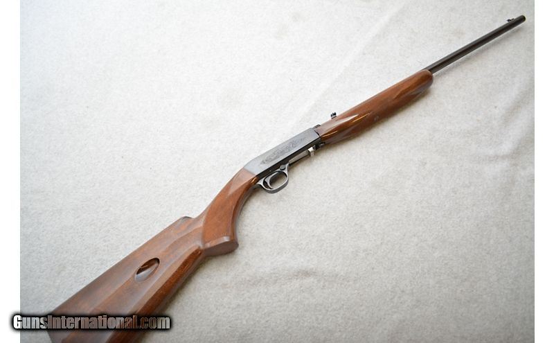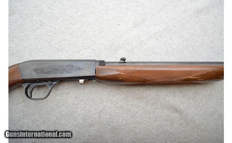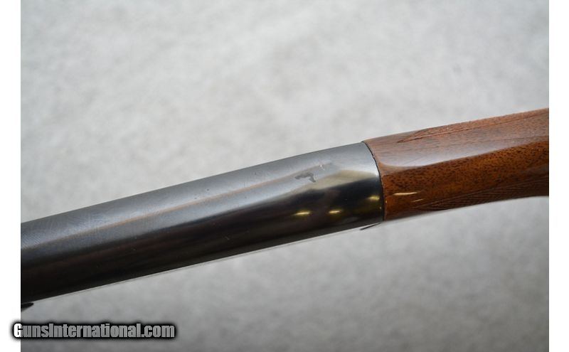 Description: Fair shape overall with the biggest issue being the stock finish. The metal has some handling marks in the form of light surface scratches. There is a spot under the fore arm wood about 1/5th the size of a dime of very shallow surface pitting. The furniture is the biggest issue with this classic plinker. The forend has a few crushed peaks in the checkering and a few light handling marks; but nothing that can't be explained with normal use. The butt has dents and scratches ranging in severity from light to moderate. The comb has taken some hits as well. The finish has a crack that is about 3¼" long on the left side. Sources indicate 1972 as the year of manufacture; though the serial number is in the post '74 format of serial-model-year. .22 Long Rifle SOLD Chambers: Semiautomatic fed from a tubular magazine. Metal Condition: Good. Wood Condition: Fair. Bore Condition: Excellent. Barrels: 19" Blued. Triggers: Blued metal with smooth face. Stock Dimensions: Gloss finished checkered walnut with 14" LOP. Fore End: Gloss finished walnut with triple panel diamond pattern checkering. Butt Pad: Blued metal plate. Weight: 5lbs Sights: Fixed front blade with brass bead and flip up adjustable rear leaf. Chokes: N/A Item Location: Green Bay |