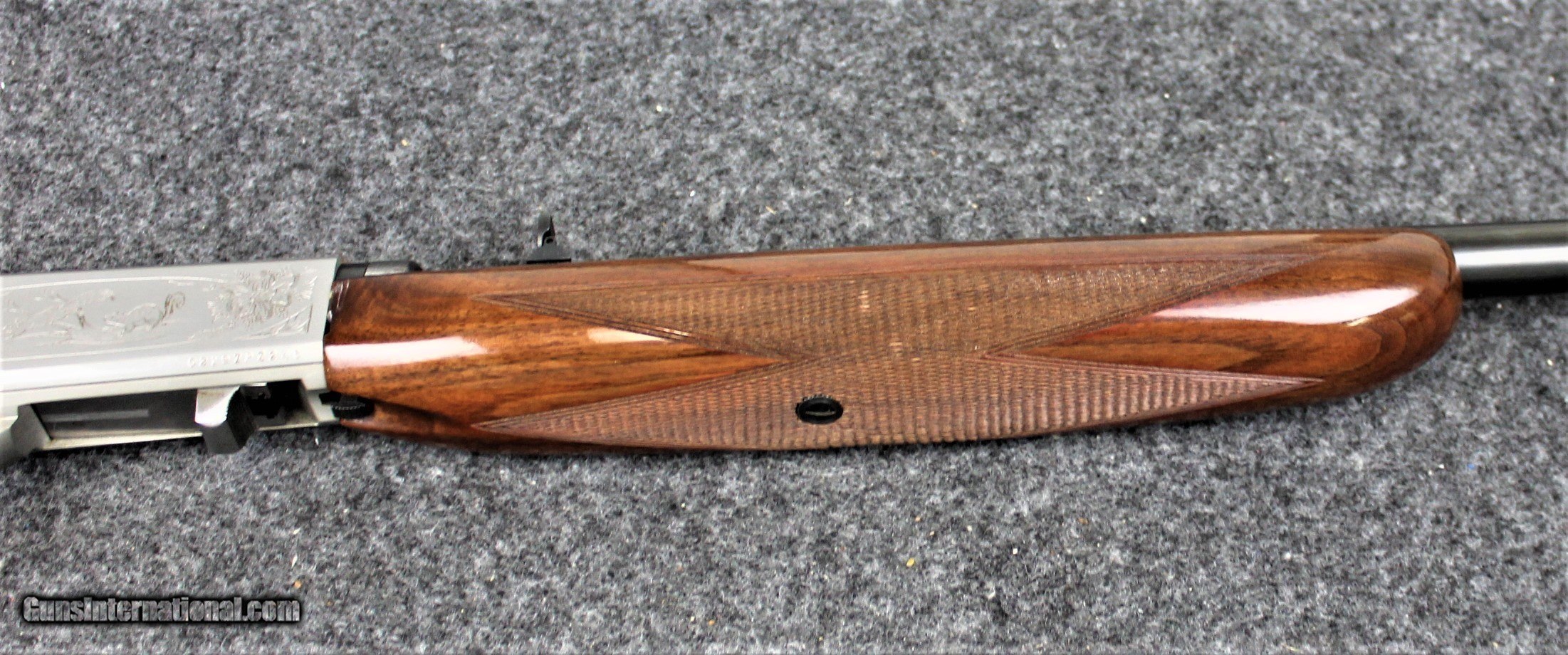 Description: Presenting a 95 per cent condition Browning SA-22 in the caliber 22 Long Rifle. The firearm has two small scratch's on the right side of the forearm, and one scratch on the right side of the buttstock. The functionality and safety has been checked by our gunsmiths. there is a fitted case for this SA-22. This firearm was made in Japan. SOLD Rifle Caliber: .22 Long Rifle Manufacturer: Browning Model: SA-22 Barrel Length: 19 Inch Condition: Very Good Metal Condition: Very Good Wood Condition: Very Good Bore Condition: Very Good Action: Semi-Auto Triggers: Single Stock: Checkered Walnut Butt Pad: Black Plastic Finish: Blued Item Location: H & H Shooting Sports |