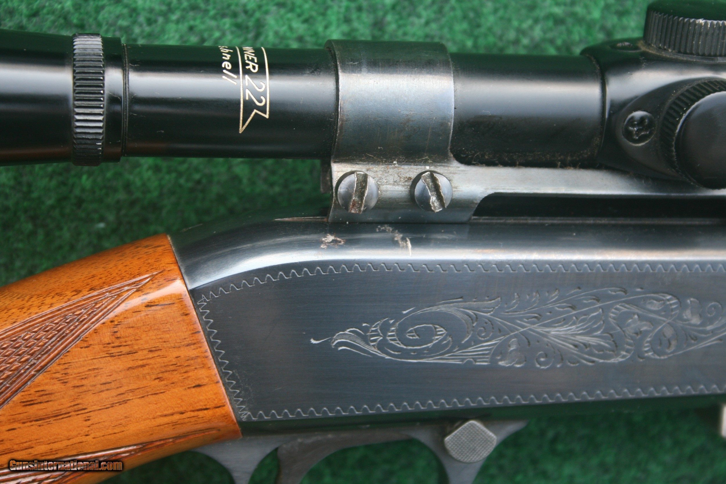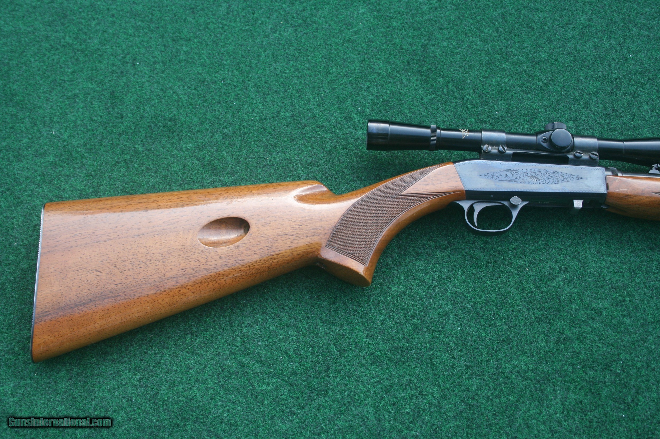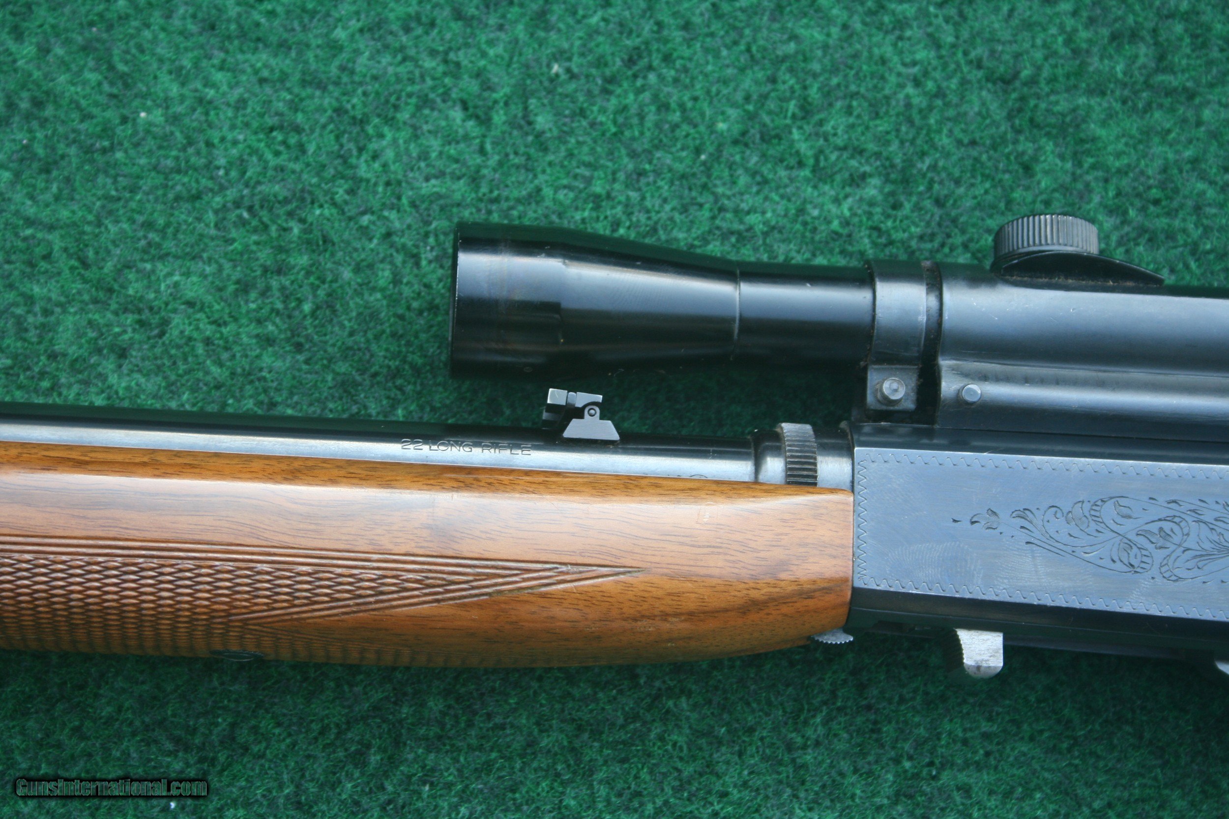Description: This is a Browning semi automatic 22 caliber long rifle made in Belgium. It is a takedown serial number 2T34947 made in 1962. It has a Bushell 4X scope and a 19-1/4 inch barrel. Wood is high gloss hardwood in excellent condition with light handling marks. The barrel and receiver are bright blue in 95% plus condition. There are two small scratches by the rear scope mounting screws on the receiver as shown in the pictures. SOLD Curio/Relic: Yes Rifle Caliber: .22 Long Rifle Manufacturer: Browning Model: semi automatic take down Serial Number: 2T34947 Barrel Length: 19-1/4 inches Bore: bright Condition: Very nice to excellent Metal Condition: very good to excellent Wood Condition: very good to excellent Bore Condition: Excellent Barrels: blued Action: semi automatic Stock: high gloss hardwood Manufacture Date: 1962 |