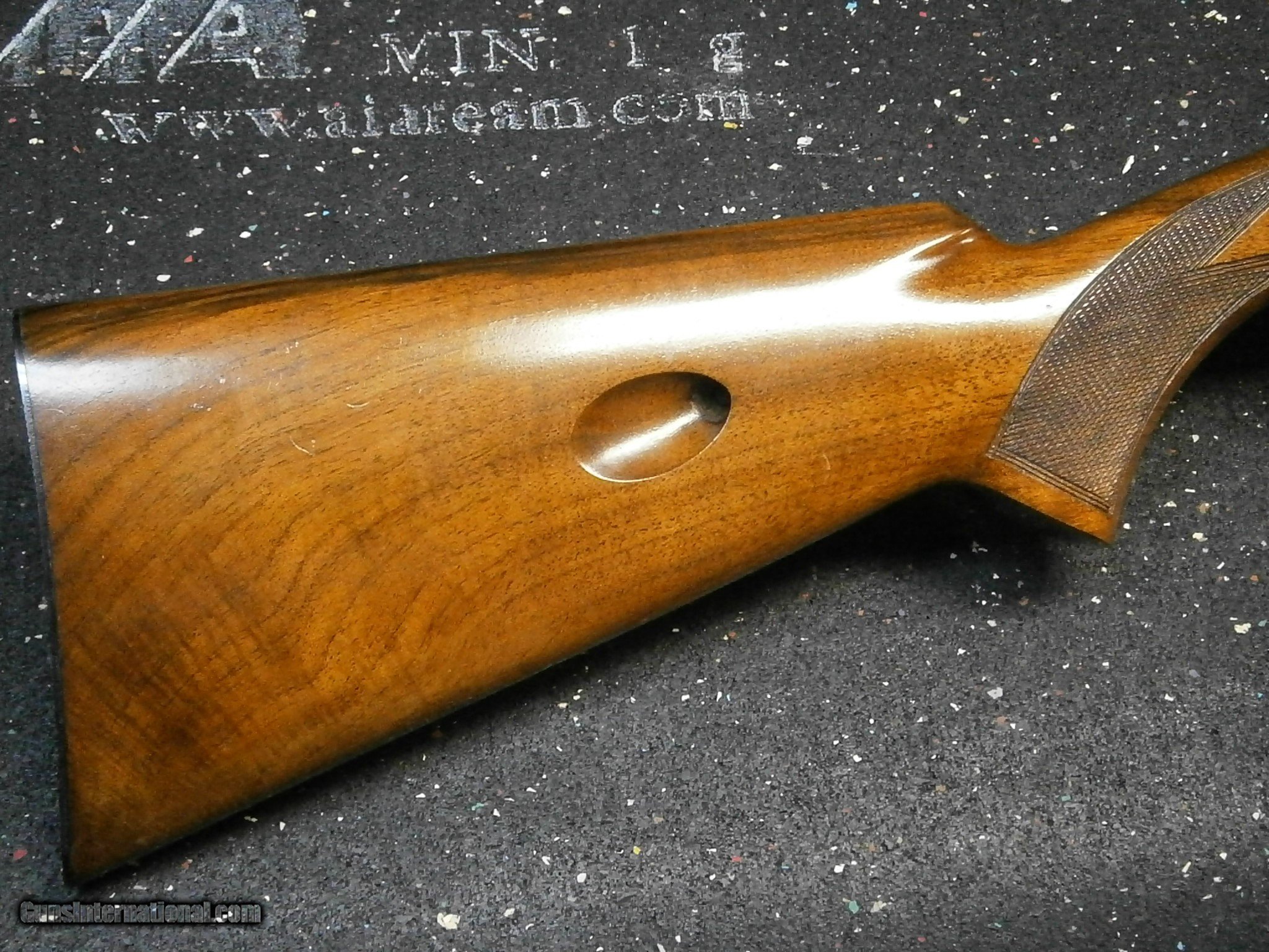 Description: (SALE PENDING)Browning semi-auto takedown model made in Belgium. This rifle features the older wheel sight and grooved receiver. I am selling an old friends collection and this was his fathers purchased in the late 50's. Minor handling marks in the wood but in great condition overall. Please add $40 for shipping and insurance to your FFL. I have many Winchester 9422’s in stock, mostly new in the box. Feel free to contact me if you are looking for a particular model or version. I am a private collector and trader in firearms. I will gladly include a photocopy of my driver’s license and all contact information needed. If your FFL dealer will not accept from a private party, I can go through an FFL dealer. The shipping will be $20 extra for his transfer fees. SOLD Manufacturer: Browning Model: Semi-Auto Caliber Info: 22 LR Condition: Very Good Metal Condition: Very Good Wood Condition: Very Nice Bore Condition: Excellent |