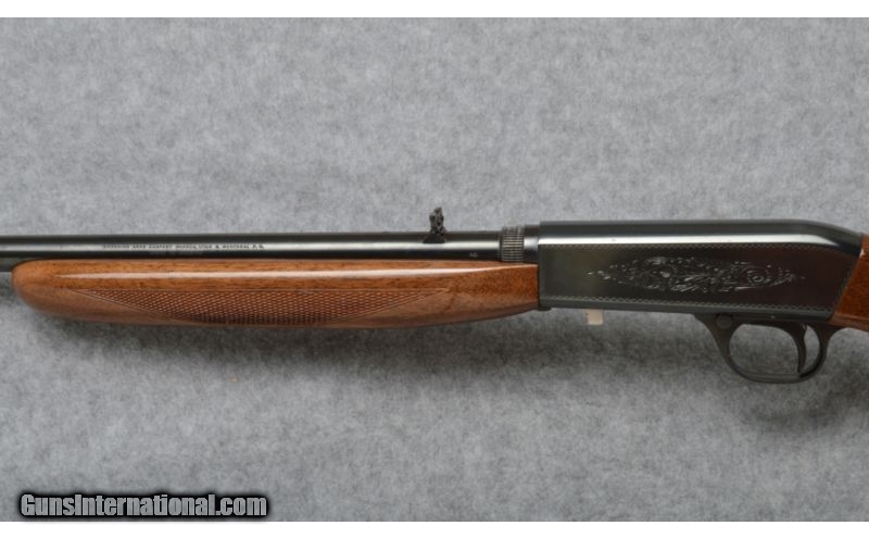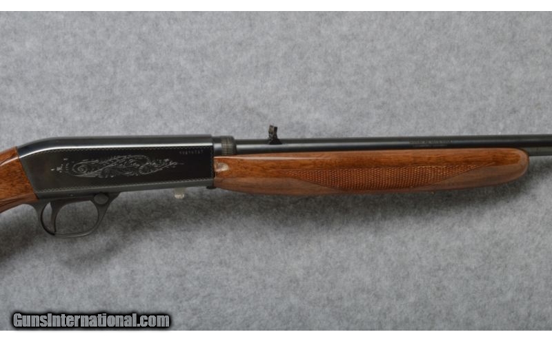 Description: Browning semi-automatic .22 caliber rifle. This is a fine shooter in great shape for a great price. SOLD Manufacturer: Made in Belgium, 1973 Caliber Info: .22 Long Rifle Metal Condition: Very Good Wood Condition: Good except for a chip in the fore end Bore Condition: Excellent Barrels: 19 inches Stock: Checkered semi-pistol grip Stock Dimensions: LoP 13 3/4 inches Fore End: Checkered beaver tail fore end. Butt Pad: Plastic Weight: 4 3/4 Lbs Sights: Beaded front blade, flip up rear. Item Location: Fort Mill, SC |