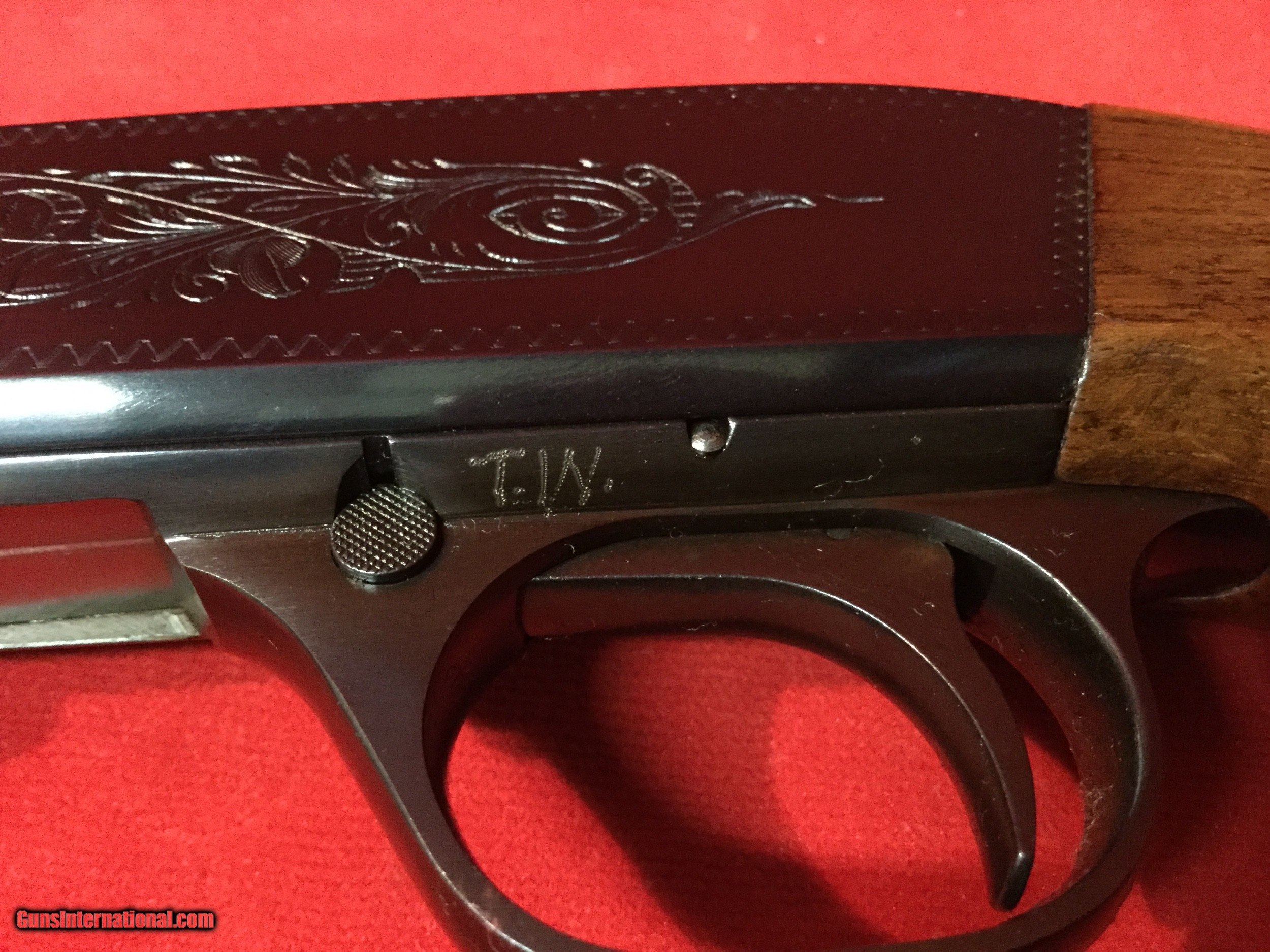 Description: Browning SA-22 22LR TAKEDOWN. This rifle is a 1972 Belgium made rifle with a T prefix. Excellent condition with just a couple minor handling marks and initials by trigger guard (see pictures). $699.99 plus $40.00 for shipping and insurance. Add 4% for payments made by card. SOLD |